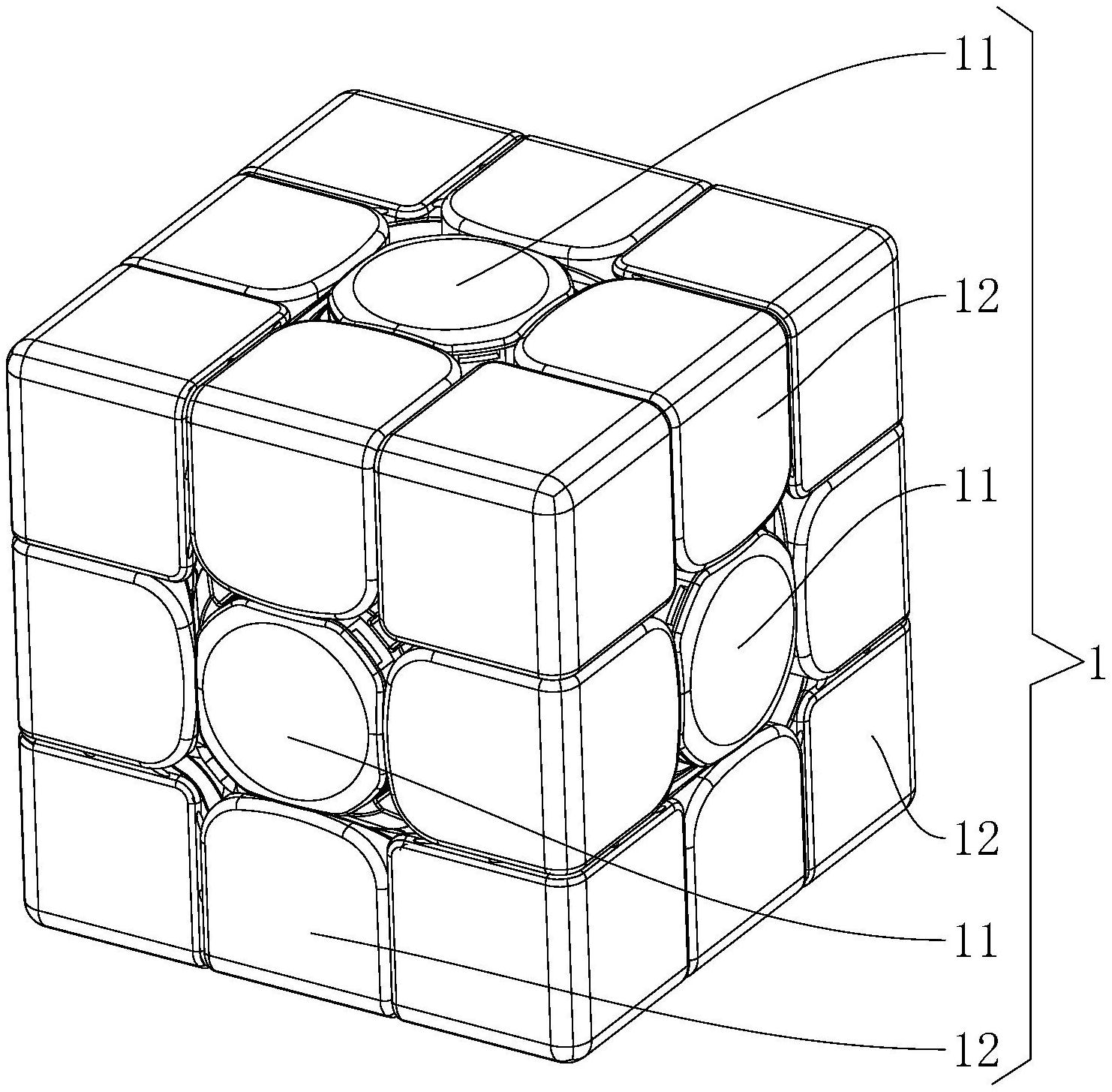 本实用新型提供了一种智能魔方,包括中心体、围绕所述中心体转动的转动块组件以及用于监测所述转动块组件转动状态的监测组件,所述转动块组件包括中部转动块以及设在所述中部转动块外围的外围转动块,所述智能魔方还包括转轴,所述转轴包括基轴、用于使所述转轴与所述中心体轴向定位连接的至少两个轴向间隔设置的定位环以及用于使所述中部转动块相对于所述转轴周向固定的棱柱。该智能魔方通过转轴的至少两个定位环,大大增强了转动块组件与中心体的连接结构,可靠性高,并通过棱柱与中部转动块周向固定连接,提高了转动块组件与转轴的转动同步性。