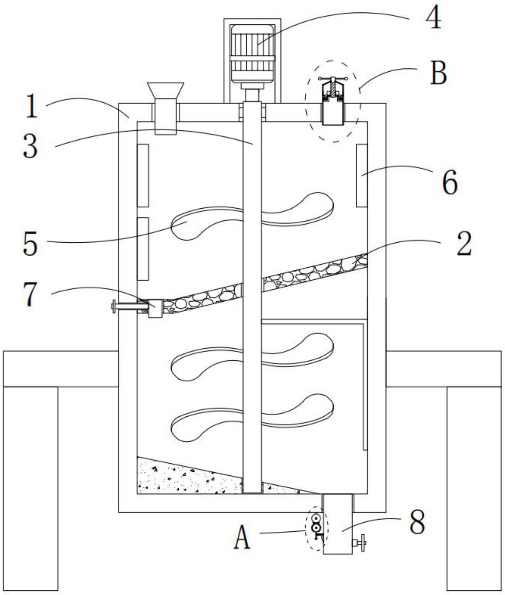 本实用新型提供一种基于驼乳粉生产用的除菌发酵装置。所述基于驼乳粉生产用的除菌发酵装置包括:罐体;隔断板,所述隔断板固定安装在罐体的两侧内壁上;搅拌轴,所述搅拌轴转动安装在罐体的顶部,所述搅拌轴的底部延伸至罐体内并与罐体的底部内壁转动连接,所述搅拌轴与所述隔断板转动连接;第一电机,所述第一电机设置在罐体的顶部,所述第一电机的输出轴与搅拌轴固定连接。本实用新型提供的基于驼乳粉生产用的除菌发酵装置具有使用方便,能够简单有效的对骆乳粉进行除菌发酵,密封性好,发酵速度快,并能够防止出料管堵塞,操作起来简单便捷的优点。