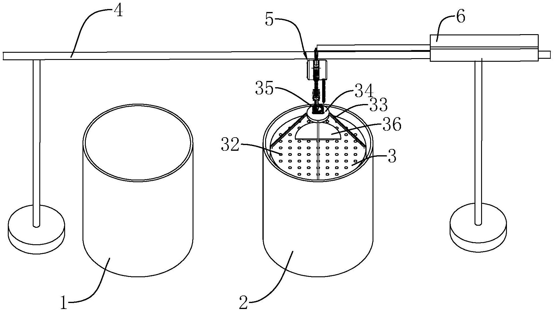 本申请涉及熟食加工技术领域,特别涉及一种辅助转移肉块的装置。一种辅助转移肉块的装置包括包括圆柱形的转移箱,转移箱内开设有容纳腔,转移箱能放置在初煮锅和卤煮锅内,转移箱的周壁上开设有若干通孔,在转移箱的顶端和底端分别开设有通过槽和导出槽,在通过槽和导出槽的位置设置有临时封堵结构。本申请能够通过将生的肉品从通过槽放置在转移箱内的容纳腔内,通过槽和导出槽均封堵后可以在初煮锅中初煮,转移箱被移动至卤煮锅进行卤煮处理。