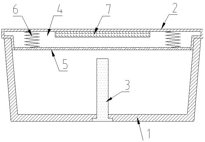 本实用新型公开了一种香椿冷冻用存储箱,包括箱体、箱盖、传导板、容置腔、透明缓冲板、弹簧和灭菌灯,其中,箱体顶端设置有箱盖,箱体内部设置有传导板,传导板截面为倒T字型结构,传导板底部的横板嵌设在箱体的底板上,且传导板的底面与箱体的底面平齐,箱盖内部设置有底面开口的容置腔,容置腔顶壁上固定设置有弹簧,弹簧的另一端固定连接有透明缓冲板,容置腔内设置有灭菌灯;总的,本实用新型具有冷冻快速均匀、对香椿芽提供有效保护的优点。