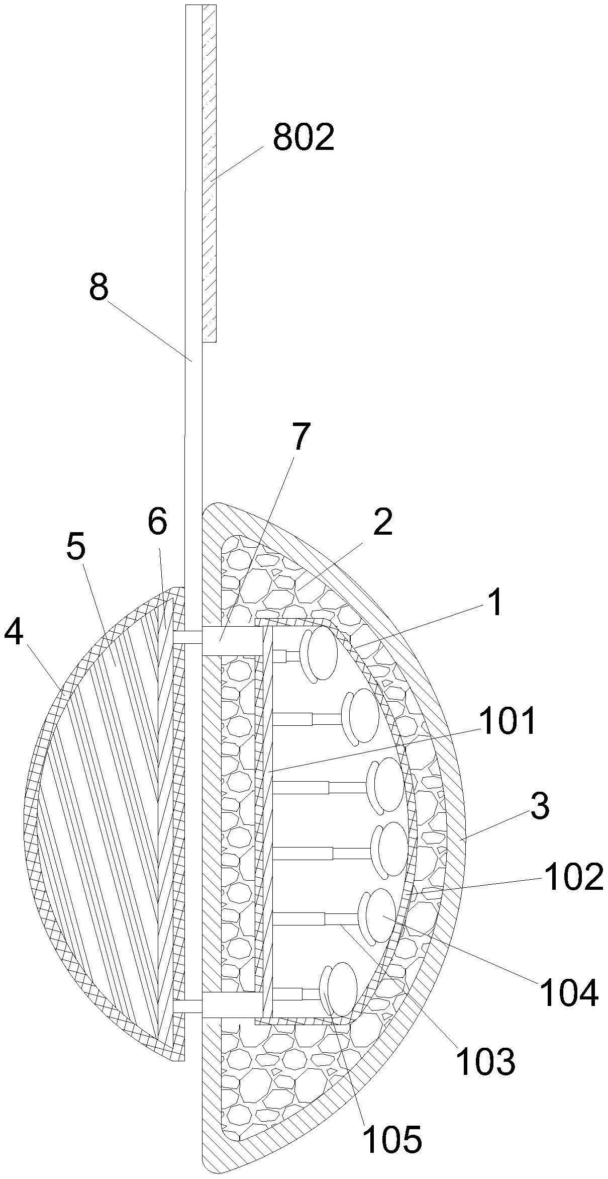 本实用新型提供了一种抗冲击护颈枕,包括固定带、填充乳胶、第一包覆层、第二包覆层、填充海绵、第二弹簧杆、枕芯模块、第二限位板,所述枕芯设于设于填充乳胶内部且,所述填充乳胶外表面包覆有第一包覆层,所述填充海绵位于填充乳胶背侧且与填充海绵反向分布,所述填充海绵外表面包覆有第二包覆层且第二包覆层内填充海绵背侧连接有第二限位板,所述第二限位板,所述第二弹簧杆一端与第二限位板背侧相连另一端穿过第一包覆层、填充乳胶与枕芯模块相连,所述固定带设于第一包覆层和第二包覆层之间并延伸至外部。本新型具有较高的舒适度、较强的抗冲击能力,受到较强冲击时不会因为过度形变而对使用者失去保护能力,同时具有良好的透气性。