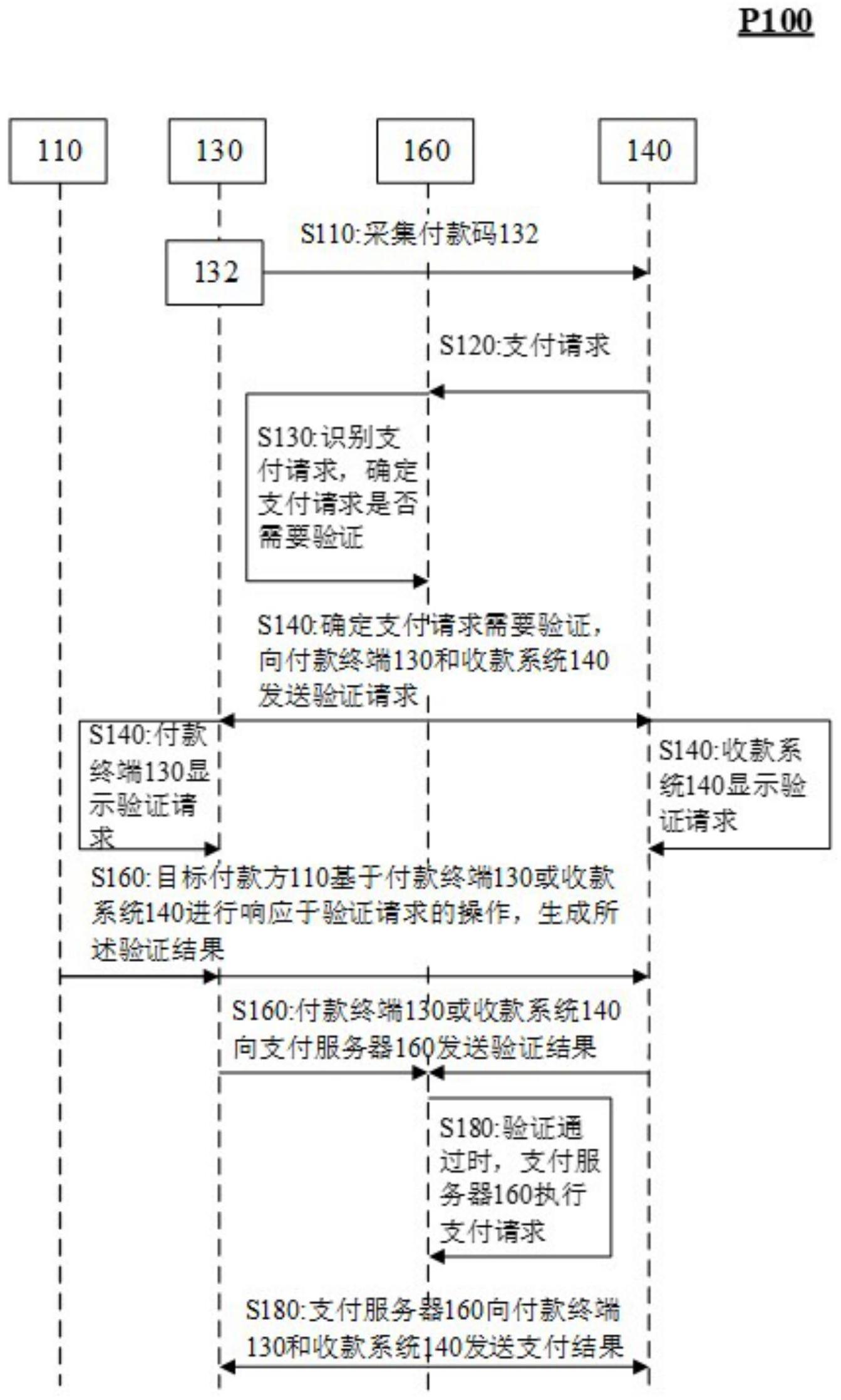 本说明书提供的支付处理方法和系统中,收款系统在采集到付款码后向支付服务器发送支付请求;支付服务器识别所述支付请求是否需要进行验证;当所述支付请求需要进行验证时,支付服务器将验证请求同时发送给收款系统和付款终端,并通过收款系统显示验证请求,以及时提醒收款方和付款方所述支付请求在支付过程中的状态,从而及时提醒付款方对所述支付请求进行验证。在付款方对所述支付请求进行验证时,付款方可以通过付款终端进行操作,也可以通过对收款系统进行操作。本说明书提供的支付处理方法和系统,能够及时有效地提示收款方和付款方关于支付订单在支付过程中的状态,提升线下场景扫码支付防丢单能力,提高支付成功率。
