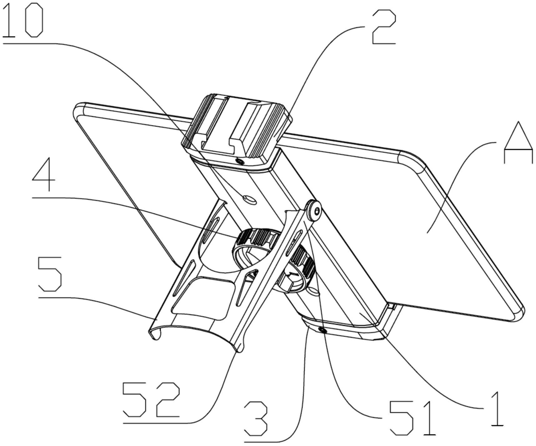 本实用新型公开了一种移动终端的夹持装置,包括:基座、第一夹持件、第二夹持件、齿轮与锁紧组件,第一夹持件与第二夹持件分别活动连接于基座的两端,齿轮设于基座内;第一夹持件设有第一齿条与第一卡块,第一齿条连接于第一卡块上,第二夹持件设有第二齿条与第二卡块,第二齿条连接于第二卡块上,第一齿条与第二齿条分别穿过基座与齿轮啮合,通过齿轮带动第一齿条与第二齿条进行运动;锁紧组件设有锁紧旋钮、第一压块与螺杆,第一压块设于基座内,螺杆的一端与锁紧旋钮螺纹连接,螺杆的另一端依次穿过锁紧旋钮、基座的一侧、齿轮后与第一压块螺纹连接。本实用新型可以加强对移动终端的夹紧操作。