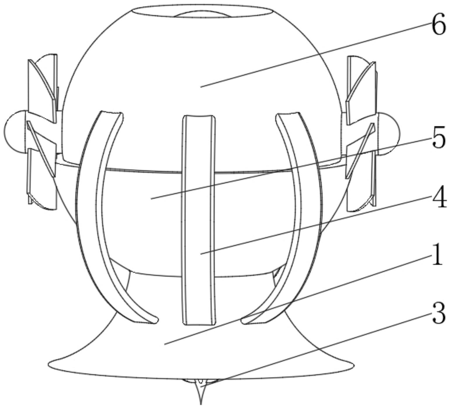 本发明公开了一种食品加工研磨装置,包括台型底座,所述台型底座底部中间位置开设有安装底孔,所述安装底孔内表面活动连接有固锁机构,所述台型底座外表面中间位置活动连接有辅能机构,所述台型底座顶部中间位置固定连接有半球承载罩,所述半球承载罩远离台型底座的一侧活动连接有球型研磨机构,所述辅能机构远离台型底座的一侧与球型研磨机构活动连接,所述半球承载罩外表面与辅能机构活动连接,本发明涉及食品技术领域。整体设备利用磁力对内部构件产生的相互磨损进行补充,确保构件之间的稳定性,确保构件相互之间接触的良好性,避免因碾磨震动导致的构件偏移,确保碾磨加工的精确性,保证加工的质量。