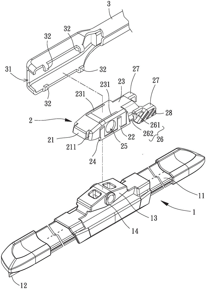 一种雨刷及其接头,用以解决现有的雨刷组件更换不便的问题,其包括:一个雨刷,具有一个本体及一个刷片,该本体的中央具有一个结合部;及一个接头,具有一个抵片及两个侧壁,该抵片位于该接头的一端,该两个侧壁通过一个顶部相连接,且该两个侧壁的中间形成开放的一个容置空间,该容置空间可供该结合部容置,该两个侧壁的底部各具有一个凸出于该两个侧壁表面的止挡部,该两个侧壁还各具有一个扣合部及与该扣合部相连接的一个翼部,两个翼部成分离的未相连接。