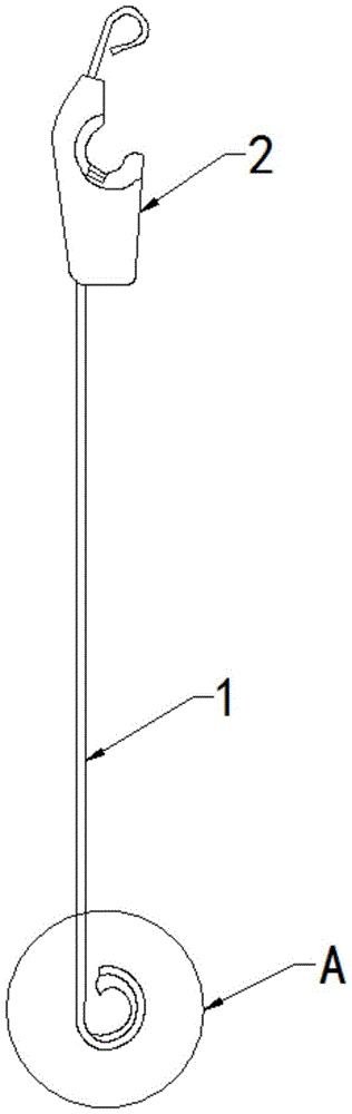 本实用新型的技术方案是这样实现的:一种用于圆织机的耐磨跳杆,包括杆体和设置在杆体上的安装架,所述杆体的一端弯折形成穿线部,所述穿线部内可拆卸连接有耐磨条,所述耐磨条内嵌于所述穿线部,所述耐磨条的材质为陶瓷;本实用新型通过在穿线部内设置有可拆卸的陶瓷材质耐磨条,大幅度减少线与穿线部之间的磨损,延长跳杆的使用寿命,且可对耐磨条进行更换,方便维护。