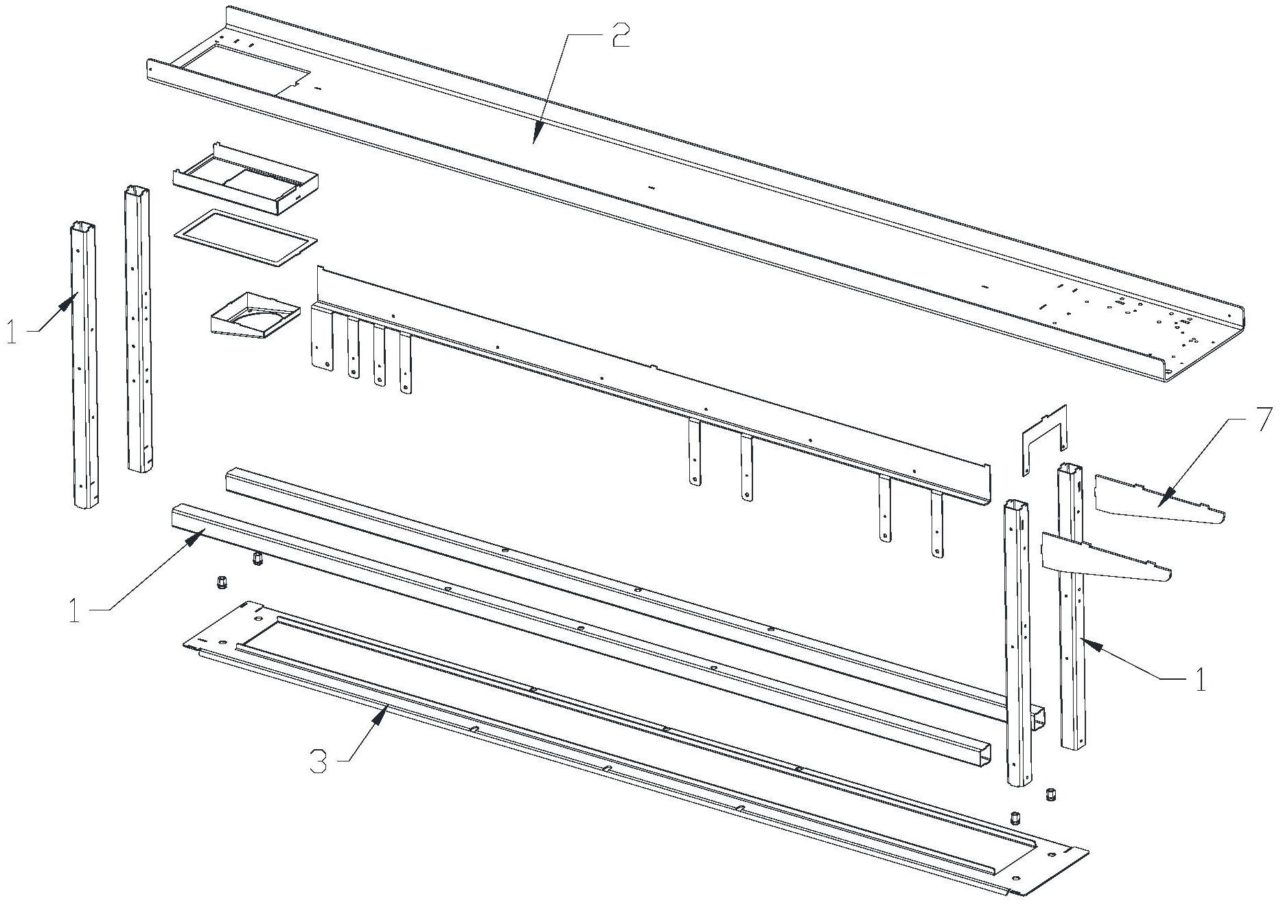 本实用新型公开了一种结构稳定的数字喷墨印花机色条框架,包括框架本体,所述框架本体包括若干方管、顶部钣金件、底部钣金件,所述顶部钣金件、底部钣金件均呈U型,所述顶部钣金件的U型开口朝上,所述底部钣金件的U型开口朝下,其中部分所述方管呈竖直设置,剩余所述方管呈横向设置,竖直设置的所述方管设置在顶部钣金件与底部钣金件之间,竖直设置的所述方管的顶部与顶部钣金件插接并焊接固定,底部与底部钣金件的两端插接并焊接固定,竖直设置的所述方管的下端与横向设置的方管两端插接并焊接固定。本实用新型具有结构更加稳定,不容易发生形变,加工工艺更加简单,整体机械结构得到简化,降低制造成本,大幅降低了产品的不良率的优点。