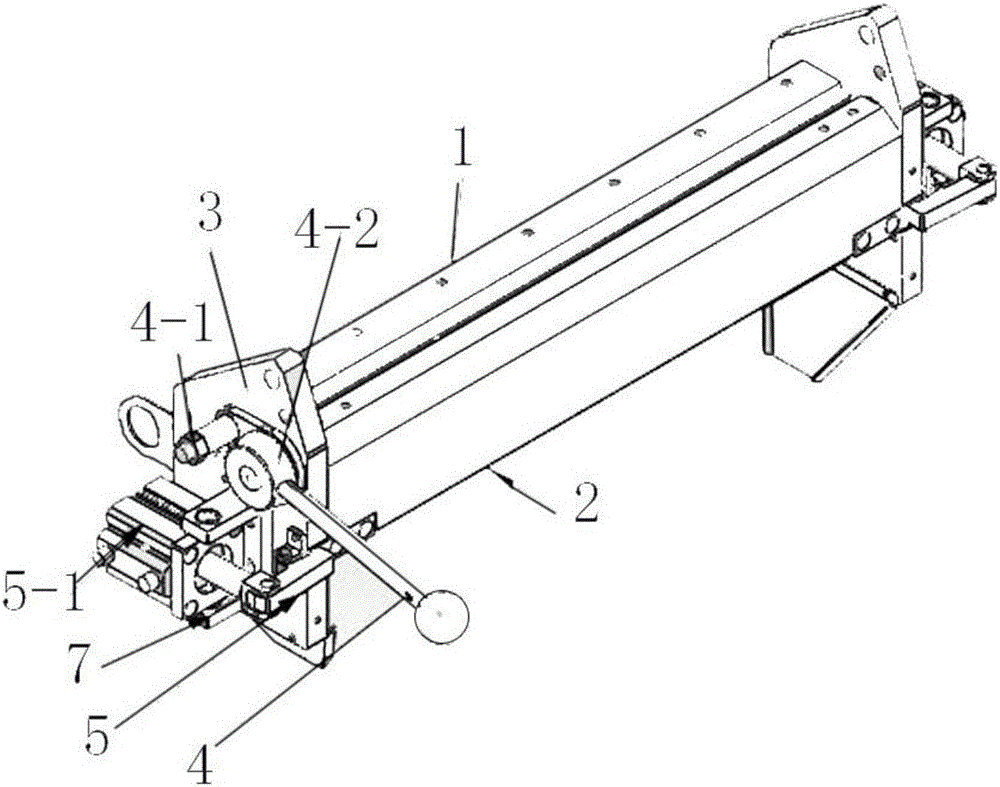 本实用新型公开了一种直线淋釉机的淋釉间隙调节机构,包括活动组合连接的固定腔体组件、活动腔体组件,以及分设于固定腔体组件和活动腔体组件两端的定位夹板,其特征在于,所述定位夹板上设置有快速开合组件和气缸锁紧组件,快速开合组件包括弹性定位销组件和打开手柄组件,打开手柄组件连接驱动活动腔体组件翻转;气缸锁紧组件包括气缸和铰接于气缸活塞杆端部的压紧块,压紧块的中部设置有与定位夹板活动连接的摆动支点,在活动腔体组件的外侧设置有厚度调节座,压紧块顶压于厚度调节座上。本实用新型结构简单,工作稳定,而且成本低。