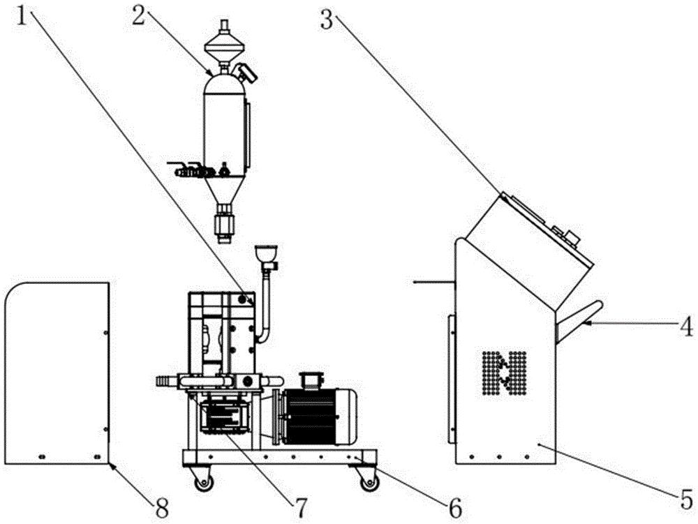 本实用新型公开了一种高压喷釉设备,其特征在于,包括泵釉装置、稳压分配装置和压力控制装置,稳压分配装置与泵釉装置连接,压力控制装置上设置需要压力参数,压力控制装置连接控制泵釉装置运动,泵到的釉料储存在稳压分配装置,稳压分配装置上设置有压力传感器实时检查压力,压力传感器的信号输出端连接压力控制装置,反馈给压力控制装置,压力控制装置通过加大或者减少频率输出到达控制压力大小和稳压。本实用新型结构简单,压力可以更高和更稳定。