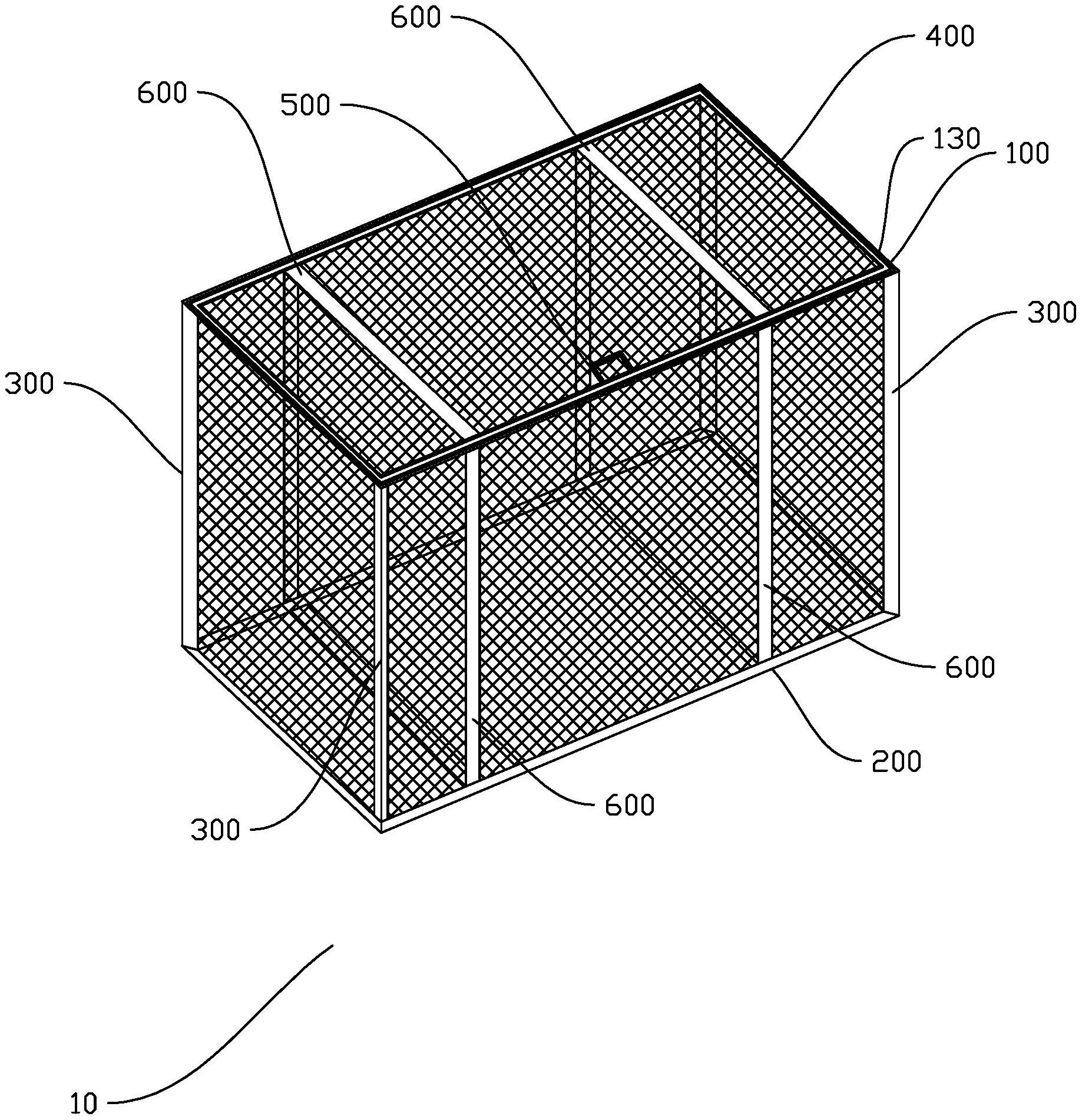 本实用新型公开了一种用于陈皮干化、储存与陈化的网箱,包括:框架,为立方体,框架由上框架、下框架和分设于上框架四角的连接杆组成;网罩,设置于框架的四壁及底部,网罩的边缘与框架固定连接,网罩的单个网格的尺寸为2mm×2mm;箱门盖设于框架的顶部;门锁包括锁体和锁扣,锁体和锁扣分设于箱门和上框架上,箱门与框架通过门锁实现网箱的锁闭。网箱主要由框架、网罩和箱门组成,其中,网罩的单个网格的尺寸为2mm×2mm,可防止大部分体型较大的昆虫进入网箱内,还可防止陈皮从网箱内掉落,还可便于陈皮在陈化过程中,皮表的囊在碎化后可从箱内掉出,陈皮在干化、储存、陈化的过程中无需转移降低了工人的劳动强度。
