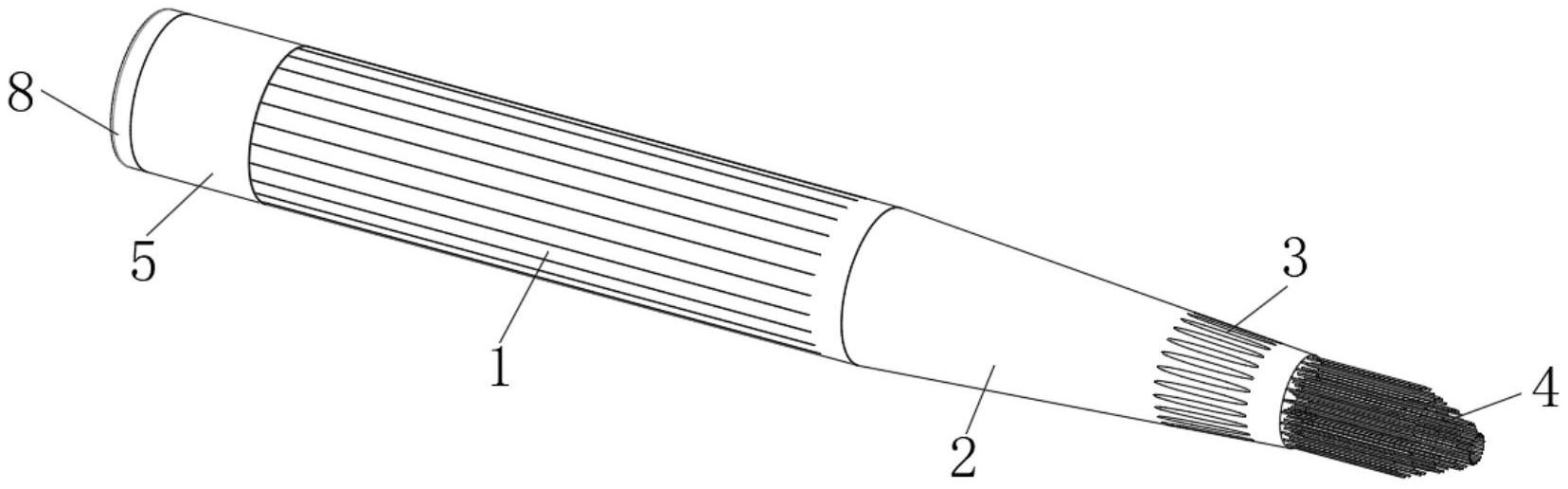 本实用新型公开了一种高分子涂料灌装机的除尘装置,包括固定筒,所述固定筒一端固定连接有接头,所述接头为锥形样式结构且内部中空,位于所述结构弧形面上开设有若干个气孔,所述气孔连通其内部,所述接头端部固定粘接有刷毛,位于所述固定筒另一端固定安装有连接筒,所述连接筒内部固定安装有动力元件,所述动力元件中包含有固定架,所述固定架为十字形样式结构,位于所述固定架中心位置上固定连接有一块圆板,所述圆板一端固定连接有驱动电机,所述驱动电机的输出端贯穿所述圆板且固定连接有扇叶。