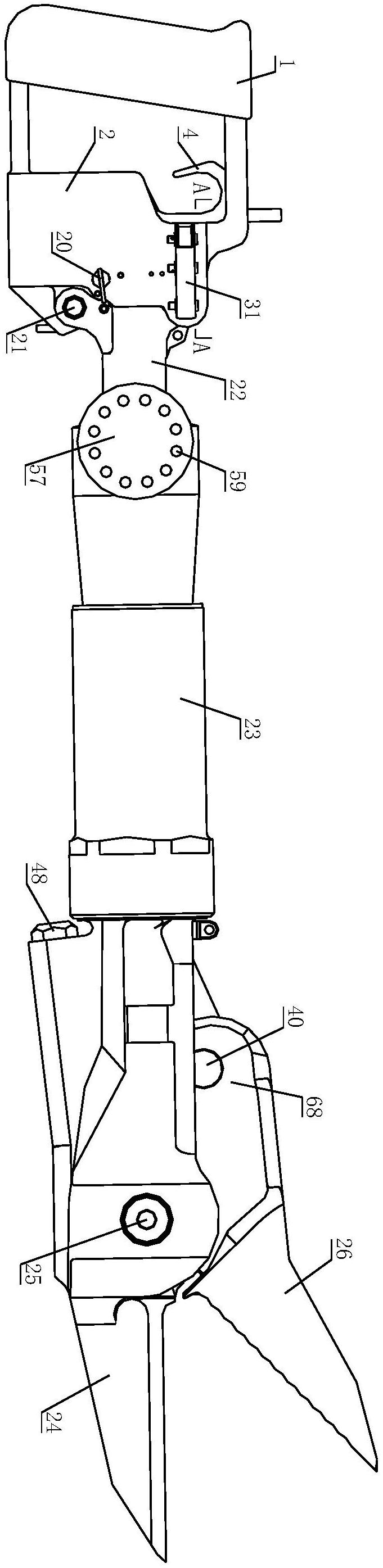 本实用新型涉及救援设备技术领域,具体涉及一种开关机构及火药动力快速救援剪刀。具体技术方案为:一种开关机构,包括握把和设置在握把上的壳体,所述壳体上通过连接销转动连接有机体,所述开关机构设置在所述壳体和机体之间且位于所述连接销的上方,所述开关机构包括通过销轴转动连接在壳体侧壁上的开关回位片,所述开关回位片上通过销轴依次转动连接有相互平行的按钮销和锁紧销,所述按钮销贯穿壳体设置,所述锁紧销连接壳体与机体,所述按钮销的另一端套设有按钮套,所述按钮套部分伸进壳体内,所述按钮销上套设有按钮弹簧。本实用新型解决了现有救援设备难以快速进行救援的问题。