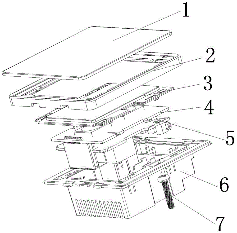 本实用新型涉及一种触控开关,包括:下壳体,具有容纳腔;面板线路板和底板线路板,均固定在容纳腔中,面板线路板位于底板线路板上方,两线路板导电连接;触摸面板,可拆的固定安装在下壳体上,供操作人员触摸以向面板线路板发送控制信号;下壳体盖板,封挡在下壳体的顶部开口处,并位于所述触摸面板和面板线路板之间,以遮挡面板线路板;下壳体具有水平外翻沿,水平外翻沿位于顶部开口外侧,下壳体盖板通过可拆连接结构与水平外翻沿可拆固定连接。由于在下壳体的顶部开口处封装有下壳体盖板,可有效遮挡面板线路板,在安装或后期更换触摸面板时,用户不会接触到面板线路板上的元器件,有效提高了产品的可靠性。