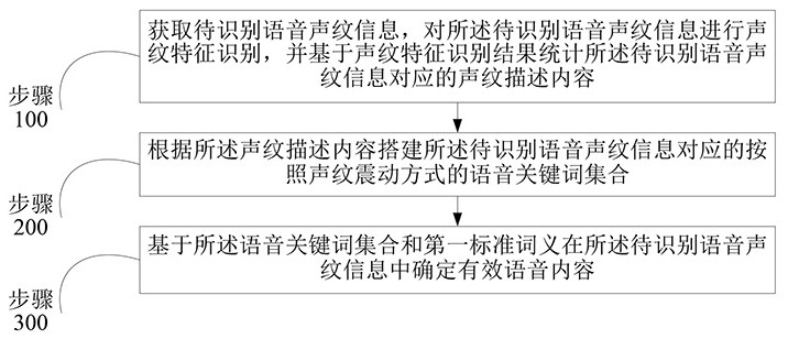 本申请提供的一种智能语音开关的控制方法及系统,通过对待识别语音声纹信息进行声纹特征识别,以统计待识别语音声纹信息的声纹描述内容,提高了统计声纹描述内容的完整性。进一步的,基于待识别语音声纹信息的声纹描述内容统计各声纹震动图谱的信号对应的语音关键词,提高了统计语音关键词完整性,进而搭建待识别语音声纹信息对应的按照声纹震动方式的语音关键词集合,有效的在噪音干扰下抽取有效语音内容,提高了确定有效语音内容的准确性。