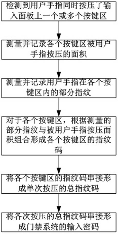 本发明公开了一种门禁机器人系统操作方法,包括:检测到用户手指同时按压了输入面板上一个或多个按键区;测量并记录各个按键区被用户手指按压的面积;测量并记录用户手指在各个按键区内的部分指纹;对于各个按键区,根据测量的部分指纹与被用户手指按压面积组合形成各个按键区的指纹码;将各个按键区的指纹码串接形成单次按压的总指纹码;将各次按压的总指纹码串接形成门禁系统的输入密码。依照本发明的门禁机器人及其操作方法,利用用户的输入习惯,将跨越输入面板上不同键区的指纹按照面积和输入顺序进行组合以得到复合式密码,能高效地防止盗刷或代刷,从而提高安全性。