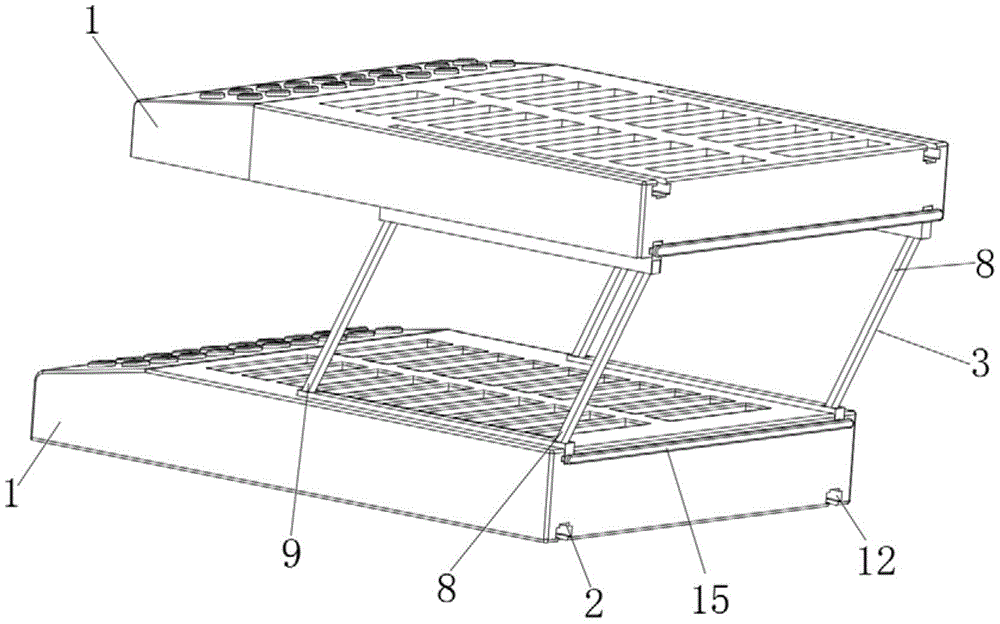 本实用新型公开了一种无线遥控的取餐装置,包括键盘发射器本体,键盘发射器本体上设有若干个放置取餐器的卡槽,键盘发射器本体顶部设有卡接槽,且卡接槽设有两个,两个卡接槽分别对称位于键盘发射器本体两侧,卡接槽内滑动连接有能够使多个键盘发射器本体连接的连接装置,此无线遥控的取餐装置,通过设置的连接装置可以实现将不同的键盘发射器本体叠加进行使用,节省了工作台的使用空间,防止多个键盘发射器起本体同时放置再工作台上的情况,使工作人员工作不方便,而且连接装置的拆卸和组装使用都比较方便。