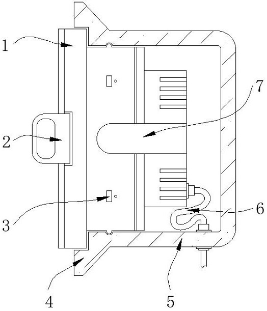 本实用新型公开了一种基于工厂灯光节能控制系统,包括主体、安装槽和触控屏,所述安装槽的一侧固定连接有侧沿,所述安装槽的内侧壁均匀设置有卡槽,所述安装槽的内部活动连接有主体,所述主体的一侧连接有电线,且电线延伸至安装槽的外侧。本实用新型通过在安装槽的一侧固定连接有侧沿,将安装槽安装到控制区域的墙壁内部,使侧沿设置在墙壁的外侧,并将主体通过限位槽与卡块卡入安装槽的内部,安装结束后,进行控制工作,通过控制键和触控屏对灯光进行控制,使用过程中,若需要对主体进行清理维护,拉住把手,可将主体从安装槽内部进行拆卸,拆卸完成后可进行清理维护,结束后再次将主体安装到安装槽内部。