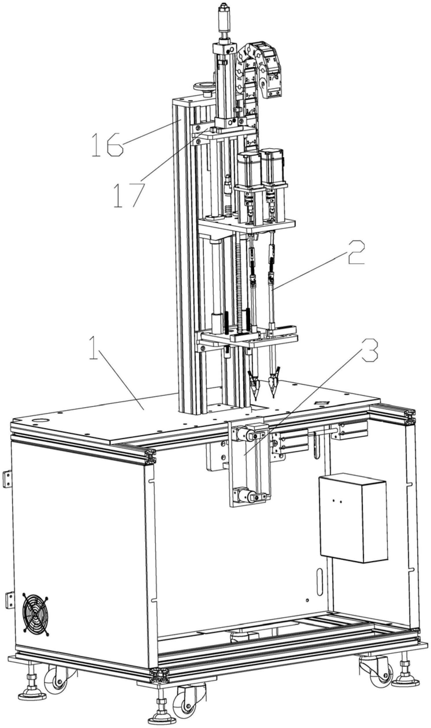 本实用新型涉及锁螺丝技术领域,尤其是指一种锁侧面螺丝装置,其包括机架及分别设置于机架上的锁螺丝机构和固定组件,所述固定组件包括设置于机架上的安装座、设置于安装座上的驱动机构、设置于驱动机构的输出端的齿条、一端与安装座转动连接的转动轴、套设于转动轴的中部外并与转动轴键连接的齿轮、设置于转动轴的另一端的固定座及设置于固定座上的限位机构,所述齿轮与齿条啮合;所述固定座位于锁螺丝机构的下方。本实用新型的结构简单、紧凑,插座的锁螺丝步骤简单。通过驱动机构、齿轮、齿条和转动轴配合,带动固定座和插座旋转,以便于锁螺丝机构对插座周向的四个侧面进行锁螺丝,提高了插座的锁螺丝效率,提高了本实用新型的自动化程度。