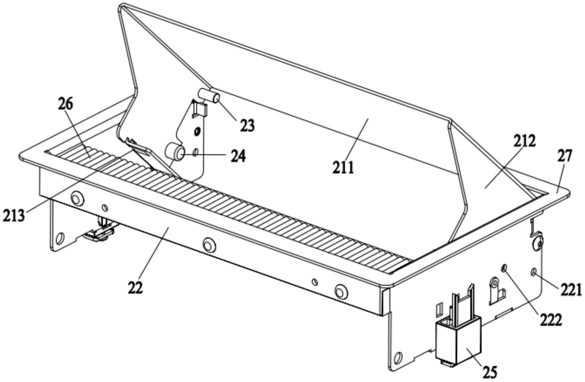本实用新型涉及办公家具技术领域,具体涉及一种会议桌的隐藏式插座安装盒,包括插座模块和安装座,安装座包括插座安装框架和安装基座,插座安装框架的两端通过转轴固定在安装基座内,插座安装框架的内侧设有阻尼凸柱,阻尼凸柱的一端与安装基座的内侧壁抵接,安装基座的侧壁对应于阻尼凸柱设有第一限位孔和第二限位孔,插座模块套设于插座安装框架内。本实用新型的隐藏式插座安装盒简单、新颖、使用方便,将插座安装框架设在安装基座内,并采用转轴连接使插座安装框架能在安装基座内转动,插座安装框架的上端面与被安装桌面齐平时,阻尼凸柱突伸入第一限位孔内,此时插座模块全部隐藏在桌面下面,既节省空间,也使桌面显得整洁。
