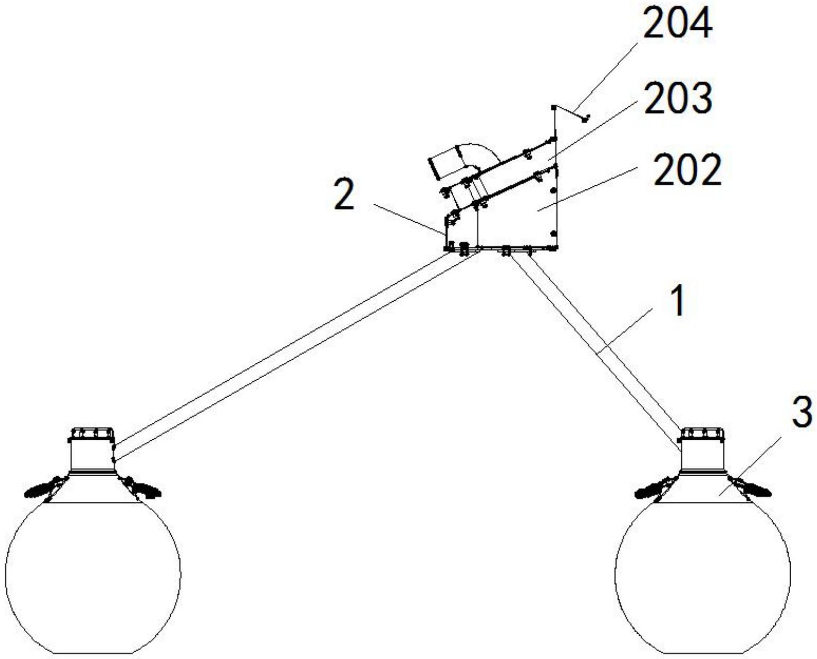本实用新型涉及一种具有防风稳定性免料台抛撒装置,包括支撑杆,所述支撑杆的顶部固定连接有抛撒组件,所述支撑杆的底端固定连接有浮球;所述抛撒组件包括有与支撑杆顶端固定连接的底板,所述底板的顶部固定安装有防尘墙板,所述防尘墙板的顶部固定安装有罩壳边墙。该具有防风稳定性免料台抛撒装置,通过进料管接头与饲料抽取箱连通,抽取的饲料从进料管接头进入到罩壳边墙中,由于防尘墙板的内部设置有抛料电机,从而抛料电机启动带动抛料叶轮,饲料从罩壳顶盖上方落下,利用抛料叶轮将饲料抛出,从而可进行抛料,并且防雨挡板可防止雨水流入到罩壳边墙中,对装置造成损坏,起到了保护作用。