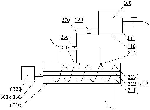 本实用新型提供一种亚麻籽油压榨加水装置,涉及油品压榨设备技术领域,包括依次连通的调节加水装置、送水管和螺旋输送机,调节加水装置设置于螺旋输送机的上方,送料管的下端出口处设有喷头,喷头远离螺旋输送机入口端的一侧还设有探头,送水管中部设有水泵和流量控制器,探头和流量控制器相连。本实用新型结构结单,成本低,通过采用螺旋输送机结合调节加水装置,将物料的水分稳定的控制在6%‑7%,设置于螺旋输送机上的探头将检测到的温度和湿度反馈给送水管上的流量控制器,进而实现对物料送水量的准确控制,保证物料的软化效果,也进一步保证了亚麻籽油的品质,有利于保障人们食用时营养成分不丧失,具有良好的社会经济效益。