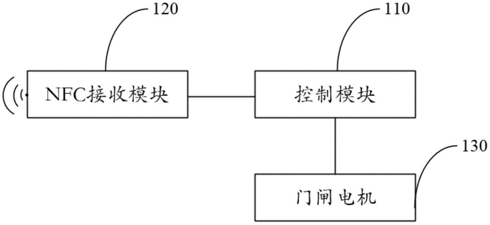 本申请提供一种车辆停放区域的门禁设备,属于车辆停放管理技术领域。该门禁设备包括:控制模块、近场通信NFC接收模块、门闸电机;控制模块与NFC接收模块连接,以获取NFC接收模块接收到的待停放车辆的车辆信息;控制模块还与门闸电机连接,以对车辆信息进行验证,并向门闸电机输出控制信号,以使得门闸电机控制车辆停放区域的门闸打开或关闭。本申请可以提高车辆停放的安全性,降低人力消耗。