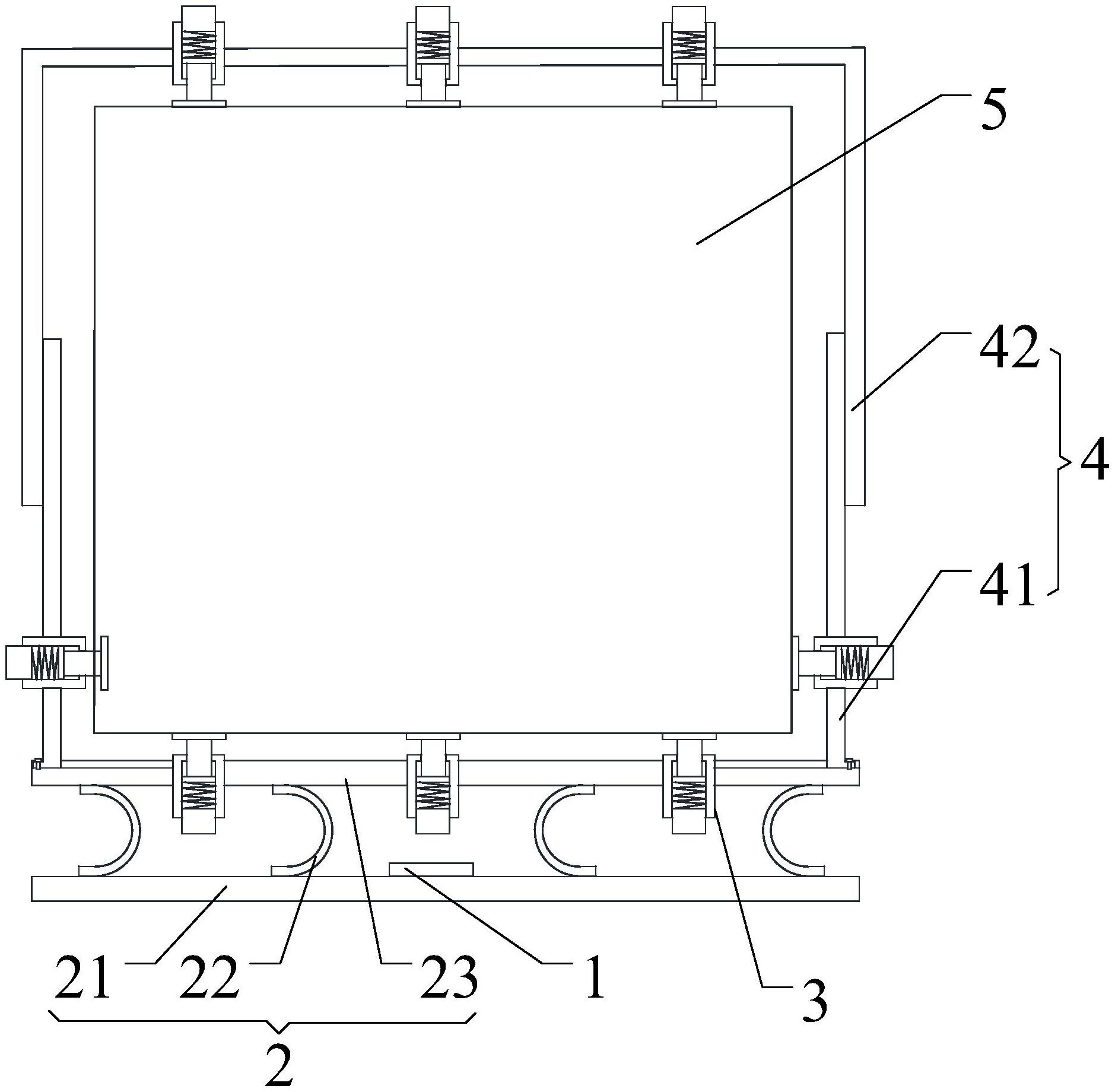 本实用新型公开了一种油浸式电力变压器用抗震装置,包括连接板、支撑机构、缓冲件以及固定机构,所述固定机构包括两个对称设置的L型固定板和U型固定板,所述U型固定板两侧开设有若干定位孔,所述U型固定板的两端与两个所述L型固定板通过螺栓固定连接,所述L型固定板固定于所述支撑机构上,若干支撑机构并列设置有至少两个并通过连接板固定连接,所述支撑机构包括上支撑板、U型支撑件以及下支撑板,所述下支撑板与所述上支撑板通过所述U型支撑件固定连接,所述L型固定板、所述U型固定板以及所述上支撑板上均螺纹连接有缓冲件。采用上述结构的一种油浸式电力变压器用抗震装置,结构简单,根据变压器尺寸调整抗震装置,适用范围广。