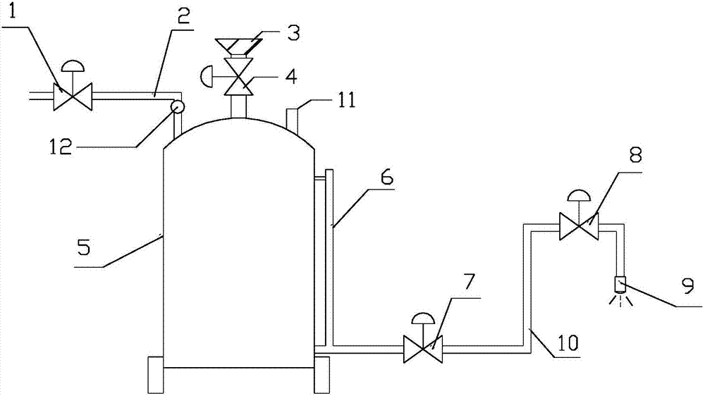 一种用于醋青保暖面料生产的和毛油加油装置,包括和毛油桶、液位器、进压缩空气管、进气阀门、出油阀门、出油管和喷嘴,所述进压缩空气管的一端通过进气阀门与进气装置连接,所述进压缩空气管的另一端通过稳压器与所述和毛油桶的上端连通,所述液位器位于所述和毛油桶的外侧并与和毛油桶连通,所述出油管的一端通过出油阀门同时与和毛油桶的下端、液位器的下端连通,所述出油管的另一端通过电磁阀与所述喷嘴连通;所述和毛油桶上还设有安全阀。本实用新型提供一种可调节油量大小、雾化较好的用于醋青保暖面料生产的和毛油加油装置。