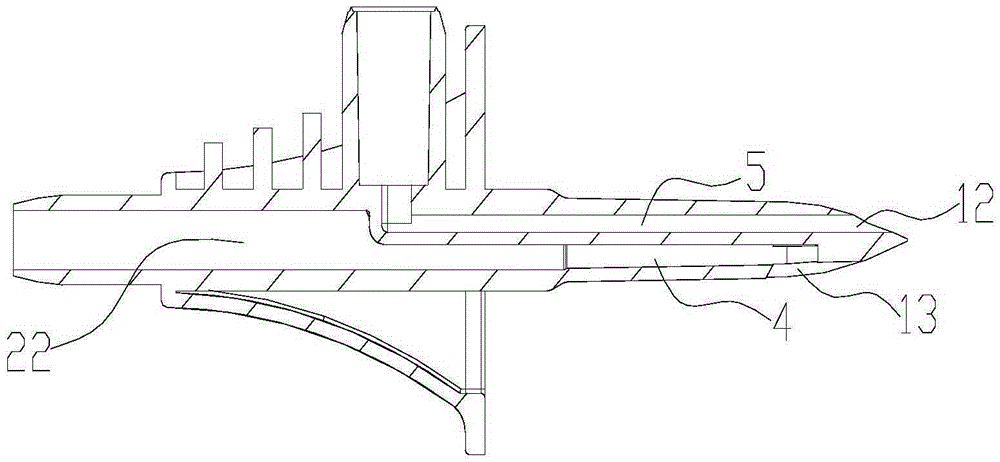 本实用新型提供一种一次性使用无菌药液转移器进气式穿刺器,包括穿接管以及连通于穿接管后端的液体通管;所述穿接管的前端向前延伸出一穿刺部;所述液体通管的外围设有手持部;所述穿接管内设有进液通道,且所述穿接管的管壁厚为0.9±0.1mm;所述穿刺部的侧面设有至少一个进液口,所述进液口的纵截面呈矩形,且进液口的前端呈与穿刺部径线垂直的平口结构,所述进液通道的前端连接进液口;所述进气式穿刺器内部设有气体通道,所述气体通道一端向上延伸至进气口,另一端沿穿接管轴向延伸至穿刺部侧面形成出气口。该一次性使用无菌药液转移器进气式穿刺器具有较合适的穿刺强度,且穿接管内具有较大容纳的液体和气体的空间。