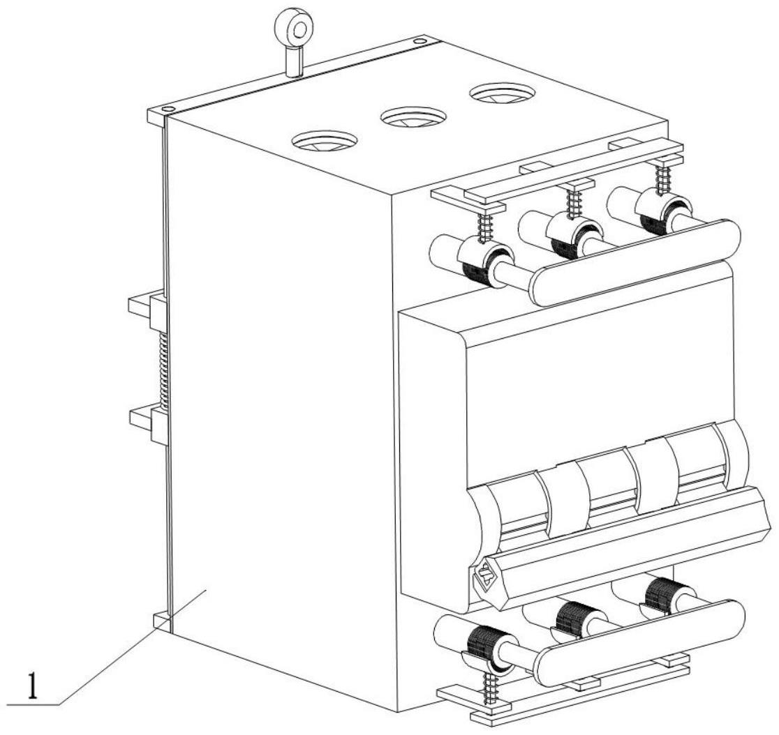 本实用新型公开了一种便于接线的断路器,涉及断路器技术领域,包括断路器壳体、背板、接线机构、防尘机构、固定机构,所述的背板固定安装在断路器壳体上,接线机构、防尘机构均设置在断路器壳体上,固定机构设置在背板上;本实用新型通过设置接线机构,可以自动对电线进行夹持固定,还可以在对电线夹持固定的同时,驱动防尘机构运动;本实用新型通过设置防尘机构,可以通过调节多个挡片的位置,对电线的周围进行遮挡,防止接线孔处进入灰尘,对断路器的使用造成影响;本实用新型通过设置固定机构,可以调节同步板一和同步板二之间的距离,以便于将断路器进行安装固定。