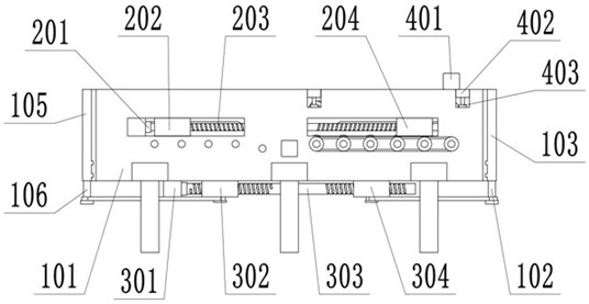 本发明公开了一种夹芯板表面磨平装置,涉及夹芯板加工技术领域,包括支撑座,支撑座的两端分别滑动设置有开合板一和开合板二,支撑座内设置有第一打磨组件和第二打磨组件,支撑座的两侧均设置有输送组件,每个输送组件上均设置有多组夹持组件,支撑座的底面上设置有间距调整组件,间距调整组件的第一端通过连接轴一与开合板一连接,间距调整组件的第二端通过连接轴二与开合板二连接,开合板一和开合板二上均固定安装有移动杆,移动杆与夹持组件连接,本发明通过第一打磨组件和第二打磨组件能够对夹芯板的六个面进行打磨,提高了打磨效率和打磨质量。