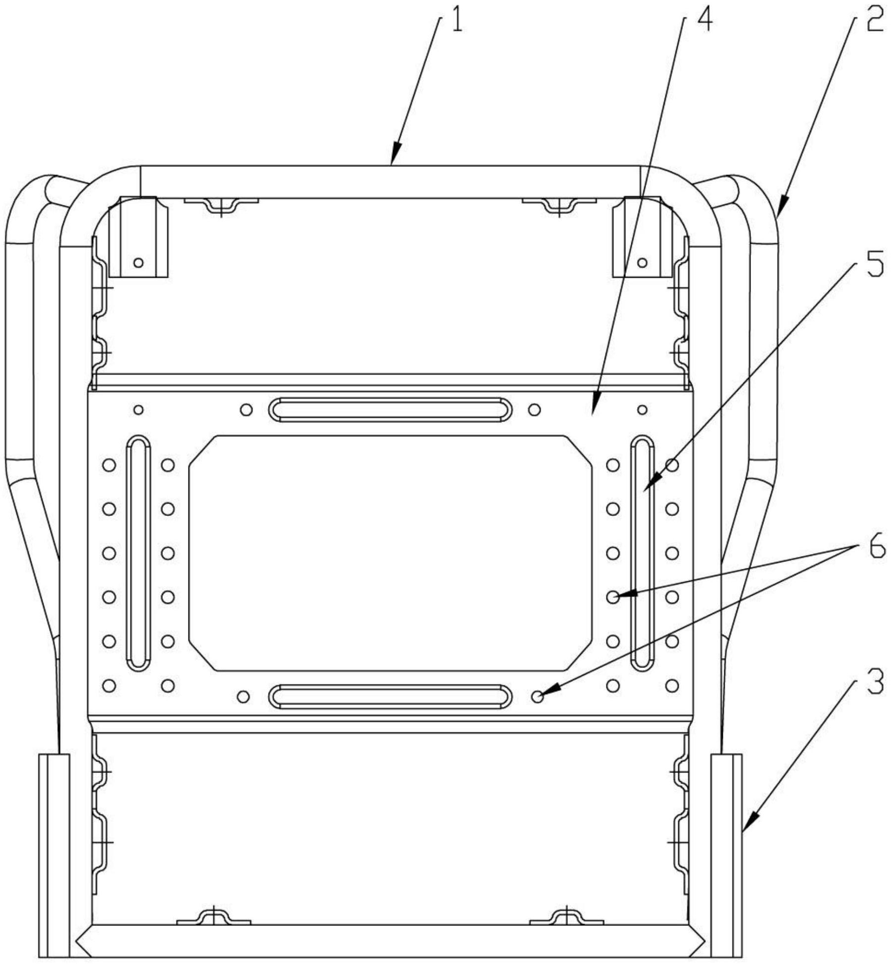 本实用新型公开了一种座椅底座支架。包括座身外框,所述座身外框靠前端两侧均固定设置有手攀,所述手攀向座身外框两侧斜向上延伸,且与座身外框构成平面之间的夹角为125°‑130°。本技术方案手攀上端向两侧偏离一定角度,有利于双手支撑发力,同时,偏离角度范围也不至于使手攀侧面受力过大而对手攀与座身外框连接处造成过大压力。