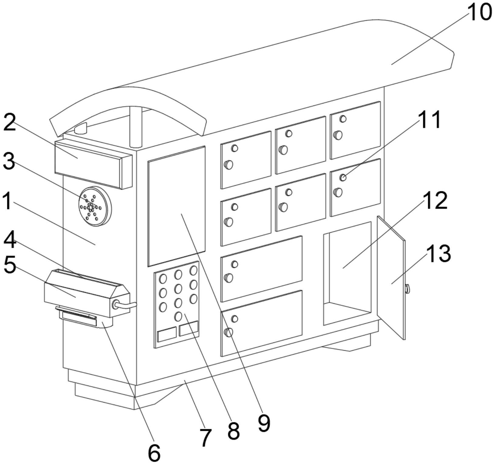 本实用新型是关于一种具有多功能的快递柜,包括柜体,柜体的一侧壁安装有控制模块,所述控制模块下侧的柜体表面设置有警报器,所述柜体的前壁设置有存放柜,所述存放柜的一侧铰接有侧门,所述侧门的表面安装有警报灯,所述存放柜的顶部内壁安装有热释电红外传感器,所述警报灯、警报器以及热释电红外传感器均与控制模块电性连接,所述柜体位于警报器下侧的表面连接有碎纸盒,所述碎纸盒的底部连通有出料管,所述出料管的两侧壁表面均铰接有磁吸板,本实用新型中通过设置热释电红外传感器、警报灯、碎纸盒以及进纸斗等结构设计了一种能有效防止在存放柜中放置活物且可以保护买家个人隐私的多功能的快递柜。