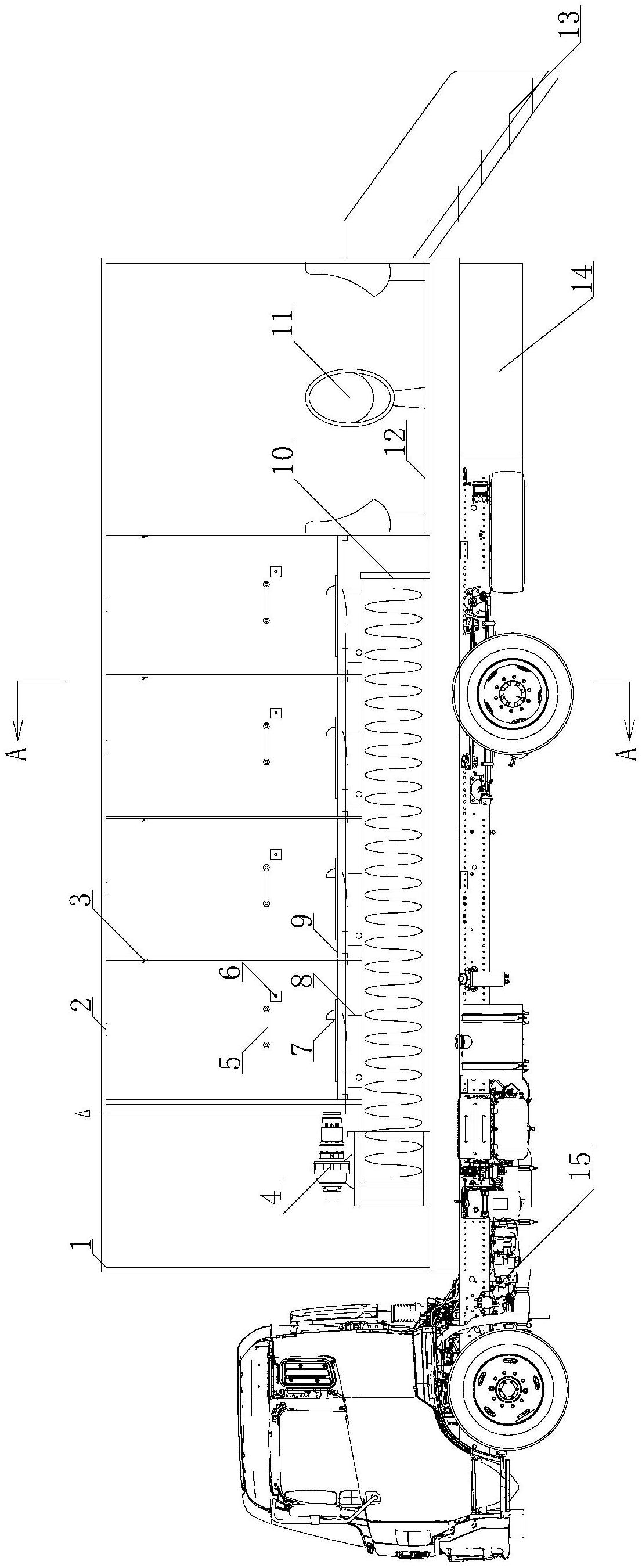 本实用新型公开了一种车载移动式资源型生物厕所。这种车载移动式资源型生物厕所,蹲便器出口处安装有固液分离装置,固液分离装置上设置有尿液排出口和粪便排出口,粪便排出口通过管路连接有发酵槽,尿液排出口通过集尿管连接至第二集尿箱,小便斗出口通过管路连接至第一集尿箱,第一集尿箱和第二集尿箱通过管路连接。本实用新型结构简单,设有固液分离装置,便于分开收集粪便和尿液,有利于后续发酵槽的发酵处理,提高资源化利用率,免水冲洗,节约用水;发酵槽内置有微生物发酵物,在搅拌装置的作用下,加速粪便与微生物发酵物的混合发酵,无害化处理,杀菌性能良好,提高资源化利用率。