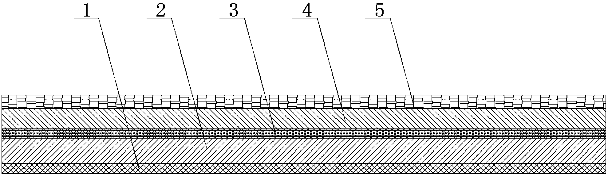 本实用新型公开了一种沥青基高分子预铺防水卷材,包括铝箔层、基层、骨架层、自粘胶层和隔离层,铝箔层热贴合在基层的下面上,基层的上面设置自粘胶层,自粘胶层和基层之间设置骨架层,自粘胶层上覆盖隔离层;设置有骨架层,从而提高了受挤压的承受能力,在石子等物质的挤压下不会产生破裂,提高了产品的防水性能,而且设置的铝箔层能够很好的适用于外部工作环境,提高产品的抗氧化能力,提高产品的寿命。