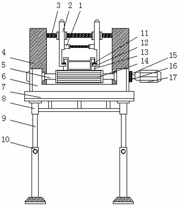 本实用新型公开了一种铝合金型材隔热条的自动穿条机,包括护板,所述护板之间的靠上位置处安装有滑竿,所述滑竿上安装有防倾斜夹板,所述转动轴上安装有输送带,所述输送带上安装有隔热条,所述传动轴上安装有传动带,所述传动轴的一端安装有电机,所述护板的底部安装有底座,所述底座的底部安装有安装套,所述安装套的下方安装有伸缩杆,所述伸缩杆的底部安装有支撑腿。本实用新型安装有防倾斜夹板,且防倾斜夹板安装在滑竿上,而防倾斜夹板安装有两个,且两个防倾斜夹板之间安装有液压装置,通过此种设计可以调节两个防倾斜夹板之间的距离,从而对不同尺寸的隔热条进行固定,增大了其灵活应变能力。