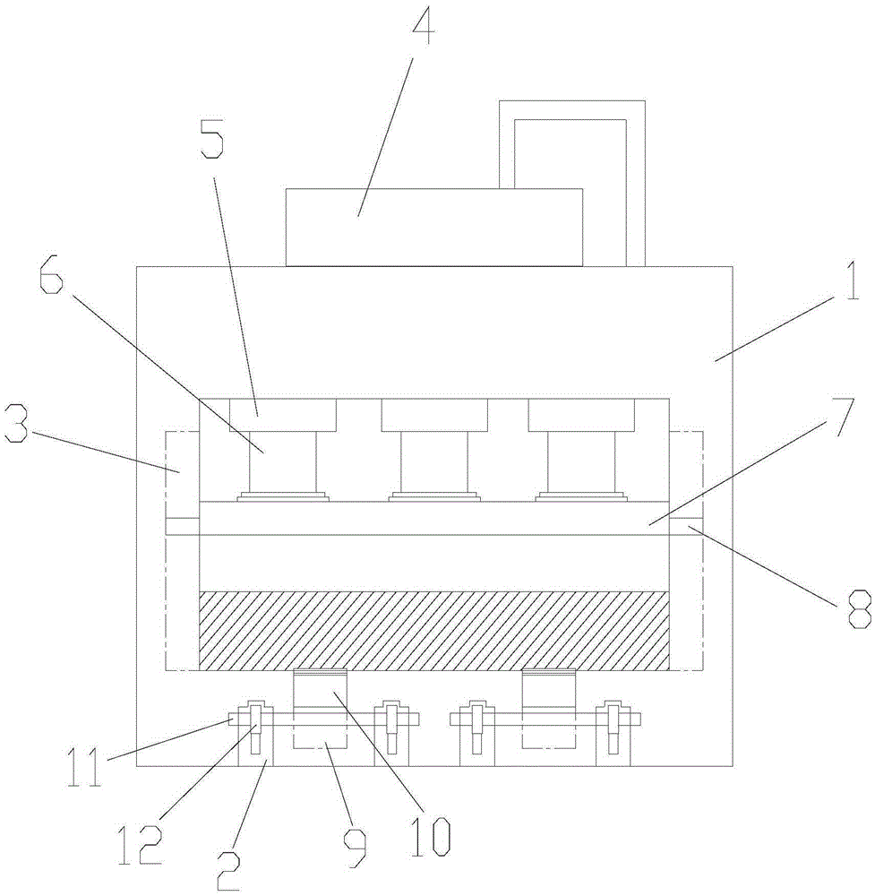 本实用新型公开一种上压式预压机,包括机架和传输装置,所述机架两侧内部设置有滑槽,所述机架上方设置有液压器,所述液压器包括液压座、液压杆和压板,所述液压座设置有一个以上,所述液压杆与压板相固定,所述压板的两侧设置有滑块,所述机架的底部设置有凹槽,所述凹槽设置有一个以上,所述传输装置位于机架的前方,所述传输装置包括传输带和转动辊,所述传输带位于转动辊上,所述转动辊上设置有齿轮;该上压式预压机能够对木板、纸张等进行预压,有利于进行下一步的热压加工,进而提高工作效率。