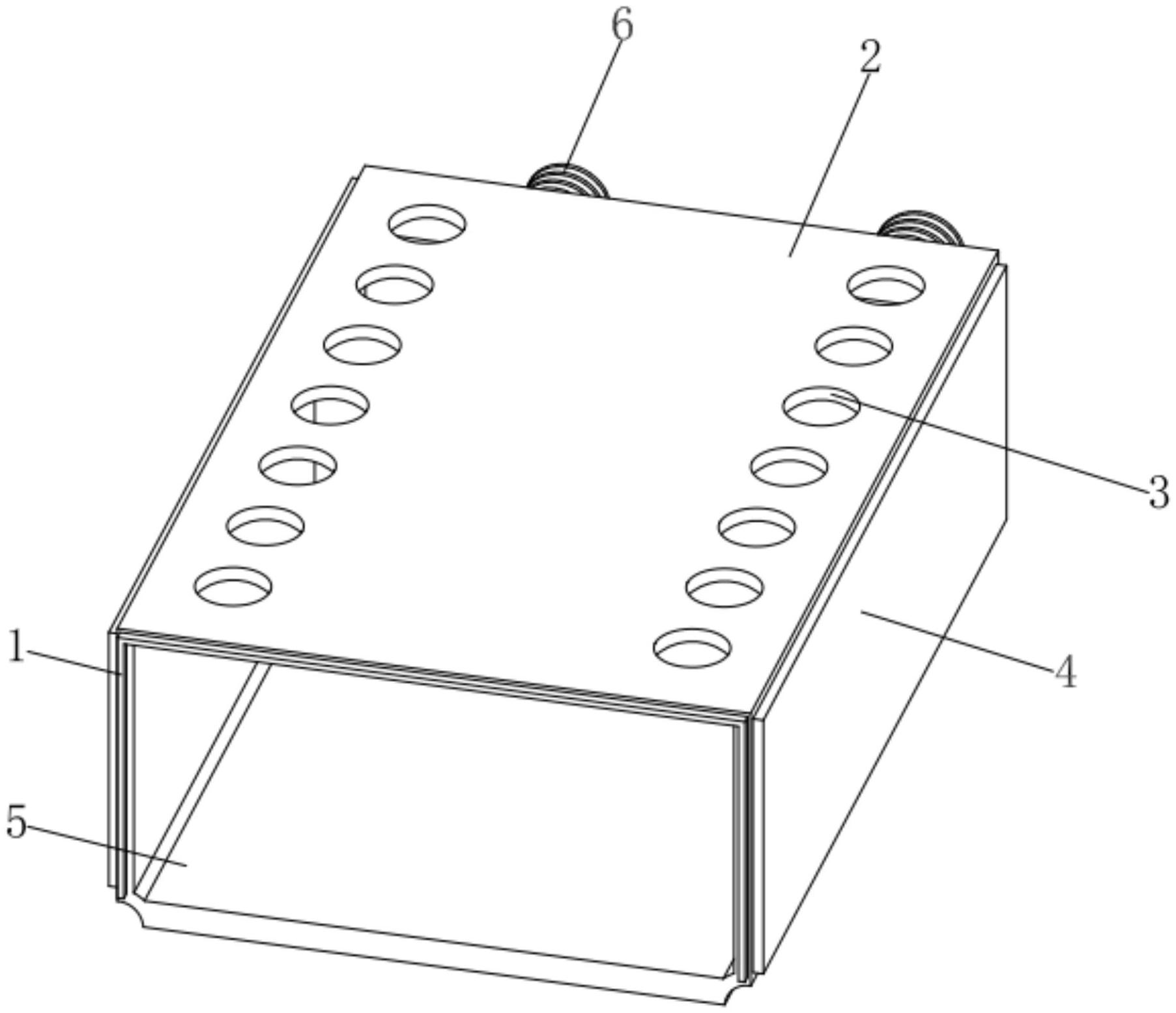 本实用新型公开了热导率低的暖边条,属于铝合金门窗技术领域,包括框体,所述框体的内部开设有空腔,所述框体的左端固定镶嵌有金属片,所述框体的上表面开设有散热孔,所述框体的内侧壁固定连接有挡板,所述挡板的右侧面固定连接有相对称的弹簧,两个所述弹簧的右端共同固定连接有顶板,所述框体的右侧面开设有相对称的插槽,所述顶板的右侧面转动连接有相对称的转板。通过螺纹筒与预埋柱的配合,能够对该装置进行定位安装,避免该装置现有安装方式容易因雨水渗透或外物刮蹭出现松动掉落的现象,解决了此类现象容易影响门窗质量的问题,通过弹簧与顶板的配合,可以推动螺纹筒进行弹出,避免螺纹筒在该装置内部出现卡顿无法伸出的现象。