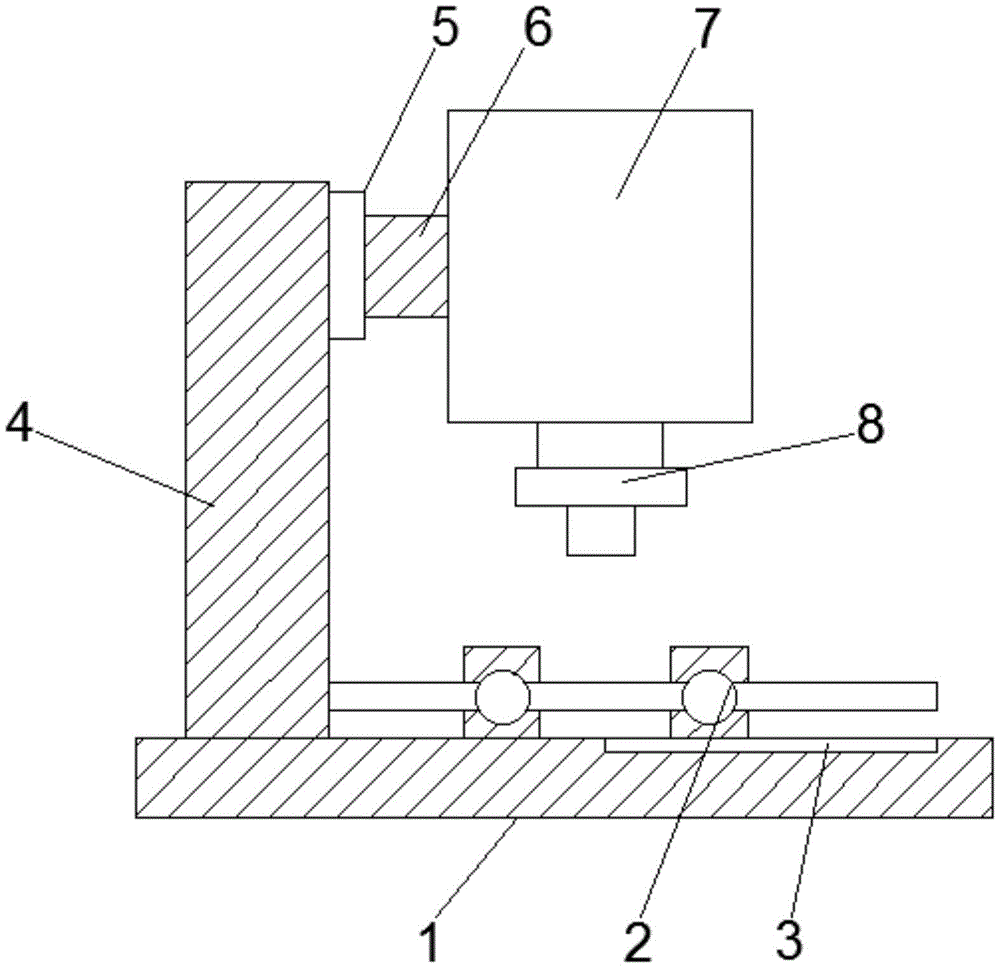 本实用新型公开了一种铝单板简易的折弯机构,具体涉及折弯设备技术领域,其包括底座,所述底座左侧上端固定连接有支撑柱,所述底座上表面固定连接有标度尺,所述底座上端中间固定连接有折弯台,所述支撑柱上端右侧固定连接有安装板,所述安装板右侧固定连接有连接杆,所述连接杆远安装板的一端固定连接有液压机,所述液压机下端固定连接有机顶块,移动折弯槽板在调节板中的齿轮配合上下两端的上连杆与下连杆转动,使得两折弯槽板等距离运动,本实用新型通过底座上表面设置的标度尺进行精确的位置移动,使得本装置更加精准,使用更加便捷,实用性强。