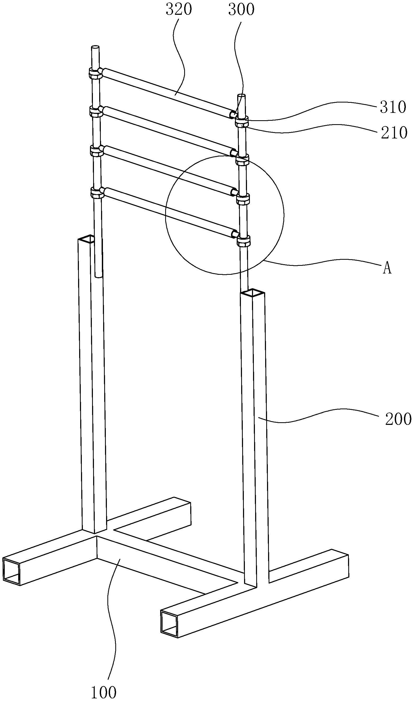 本实用新型公开了一种托料架,托料架包括底架、两个立杆和多个横杆,立杆安装于底架上并且与底架相对固定,两个立杆相互平行,多个横杆相互平行并且直线排列。横杆的两端均设置有杆套,杆套套设于立杆,立杆设置有外螺纹,立杆螺纹连接有多个承托件,杆套的下端与承托件抵接。或杆套在Y方向上的一端固定连接有多个夹片,夹片与立杆抵接,杆套螺纹连接有调节筒,调节筒的内壁呈锥状,调节筒的内壁与夹片抵接。或杆套连接有锁紧件,锁紧件包括凸轮部和转动柄,凸轮部与杆套铰接,凸轮部与转动柄相对固定,凸轮部与立杆抵接。方案的托料架的横杆的高度调节较为简单,能避免高度不同的多个塑料制品的形变量差异大导致平直度偏差大的情况。