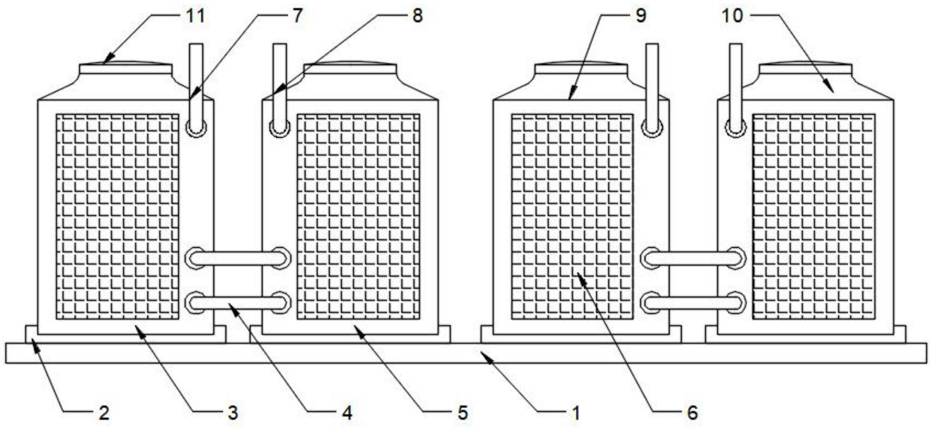 本申请提供了一种太阳能热水器用上水装置,包括结构基座,结构基座上方设置有四组防漏环,第一高温罐和第二高温罐之间设置有两组连接管,第一低温罐和第二低温罐之间设置有两组连接管,第一高温罐内部设置有水泵,水泵与进水管进行连通,第一高温罐上端设置有进水管,第二高温罐上端设置有排水管。本实用新型通过水泵与进水管进行连通,提供倒入水流的压力,第一高温罐上端设置有进水管,通入到用户家中,通过防护盖来将第一高温罐进行密封,避免杂质进入并且可以便于后续的维护;通过过滤框来对第一高温罐中上下层水流的过滤,提升水流的质量,避免杂质在管路中积聚,通过把手来将过滤框进行取出和安装,具有较强的实用性。