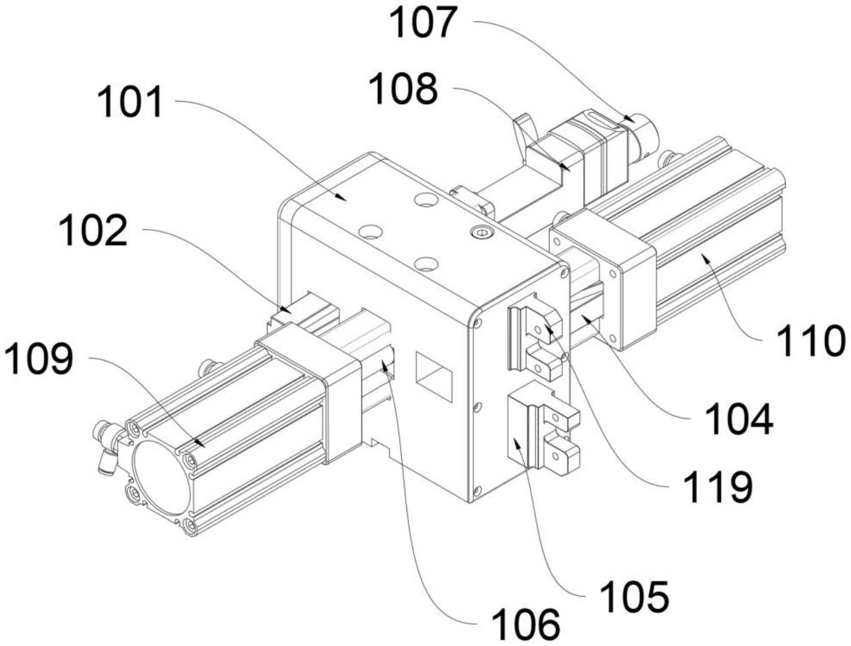 本实用新型公开了一种线束端子双面焊接夹具驱动机构,具体涉及线束焊接技术领域,包括滑动块、驱动组件、限位块、上推杆和下推杆,驱动组件包括上驱动组件和下驱动组件,上驱动组件包括上驱动装置和上滑块,上驱动装置与上滑块固定连接,上滑块与上推杆配合滑动连接,下驱动组件包括下驱动装置和下滑块,下驱动装置与下滑块固定连接,下滑块与下推杆配合滑动连接,限位块与上推杆和下推杆配合滑动连接,本实用新型能够实现自动化控制,实现焊接过程中对端子进行夹紧,提高焊接的效率和质量。