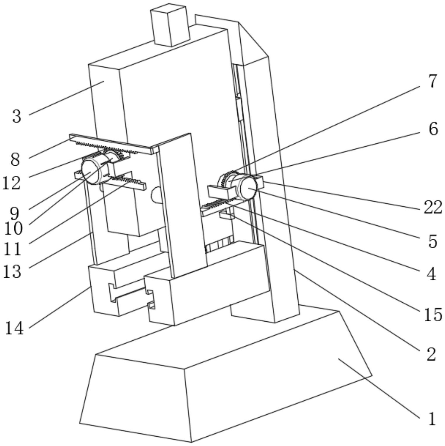 本实用新型涉及塑料熔接设备技术领域,且公开了一种超声波熔接机模具固定座,包括升降块,所述升降块的前端转动连接有第二从动杆,所述第二从动杆的一端固定安装有第二电机,所述第二从动杆的外表面固定连接有第二齿轮,所述第二齿轮的表面啮合有第二齿板和第三齿板。该超声波熔接机模具固定座,对模具进行固定时,通过第二电机的运作带动第三齿板和第二齿轮进行转动,使得与第二齿轮表面啮合的第二齿板和第二从动杆进行水平移动,该结构的设置,能够有效避免了不同尺寸模具不易固定的问题,可以达到固定不同尺寸的模具的效果,同时,降低了工作人员的劳动强度,缩短了更换模具所需的时间,在实际使用中提高了相应的工作效率。
