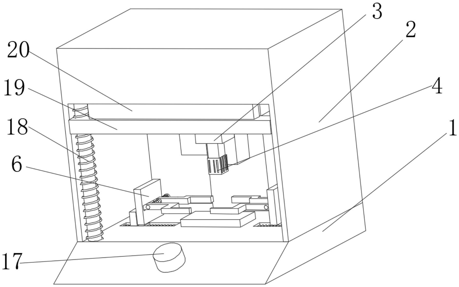 本实用新型涉及熔接机技术领域,且公开了一种超声波熔接机防护装置,包括底座,所述底座上表面开设有两组滑槽,两组所述滑槽的内壁两端转动连接有第三螺纹杆,所述第三螺纹杆的表面螺纹连接有滑块,所述滑块的侧面固定安装有支撑柱,所述支撑柱的另一端固定安装有支撑架,所述支撑架的一侧开设有移动槽,所述支撑架的一侧固定连接有限位架,所述限位架的一侧转动连接有第一螺纹杆。该种装置的设置解决了待熔接物品无法固定的问题,能够更加稳定的将待熔接的物品固定在操作台,从而方便工人师傅进行熔接,从而减少了因工人师傅固定熔接物品消耗的时间,大大的提高了工人师傅的工作效率,减少了因为操作导致的物品损坏的概率,降低了经济损失。