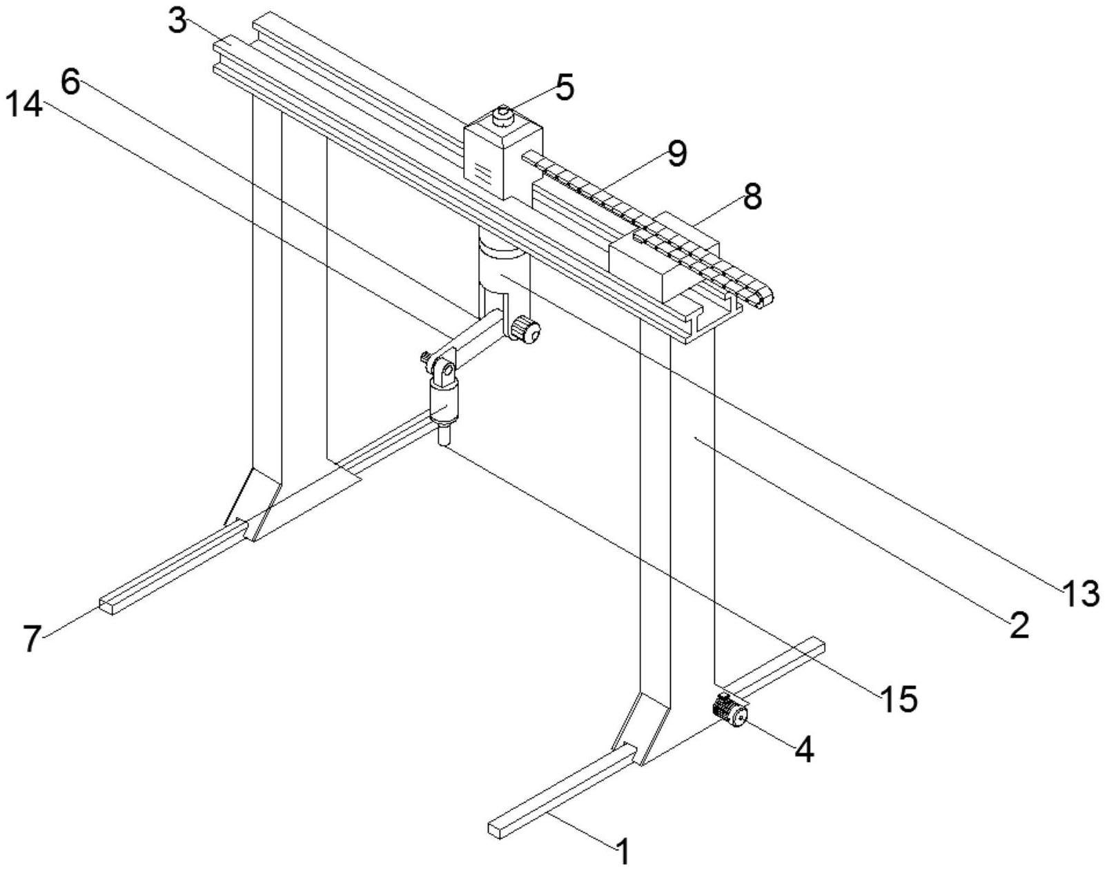 本实用新型公开了一种龙门式超声波焊接机,包括滑轨,滑轨顶部滑动连接有立柱,立柱顶部设有横梁,横梁内部底部开设有滑槽,立柱底部一侧设有行走电机,行走电机一侧与立柱底部内部传动连接,横梁顶部中心端设有控制箱,控制箱底部设有机械臂组件,机械臂组件底部转动连接有超声波焊接组件,控制箱一侧设有配电箱,配电箱底部与横梁顶部一端螺栓连接,配电箱顶部固定连接有拖链,拖链一端与控制箱一侧固定连接,拖链内部设有导线。该种龙门式超声波焊接机,通过设有的龙门结构可以实现大型工件的焊接,通过设有的机械臂组件方便对工件进行多角度焊接,提高焊接效率。