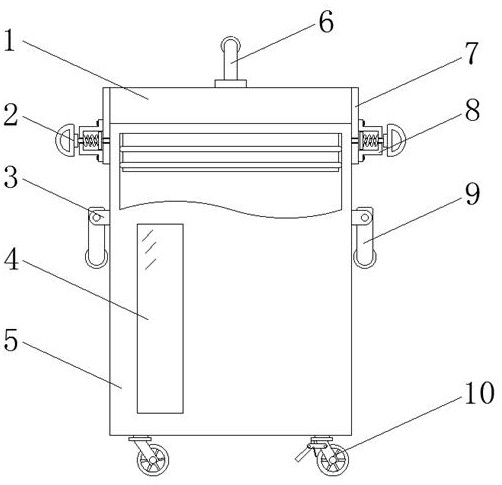 本实用新型公开了一种外墙微晶石涂料的包装桶,包括桶体,所述桶体的顶部设置有盖体,所述盖体的两侧均固定连接有固定板,所述固定板的一侧固定连接有固定壳,所述固定壳的一侧贯穿有插杆,所述插杆的一侧依次贯穿固定板和桶体且延伸至桶体的内部,所述固定壳内壁的一侧固定连接有弹簧,所述弹簧的一侧固定连接有挤压块。本实用新型提供的一种外墙微晶石涂料的包装桶具有插杆,插杆可以使盖体与桶体之间插接固定,拉动两侧的手柄即可将插杆抽出使用桶内的涂料,盖体与桶体连接处设置有密封圈,配合插杆固定可防止涂料在运输或移动过程中洒出,相较于传统的微晶石涂料包装桶本实用新型盖体的固定结构更加稳定,密封性更好。