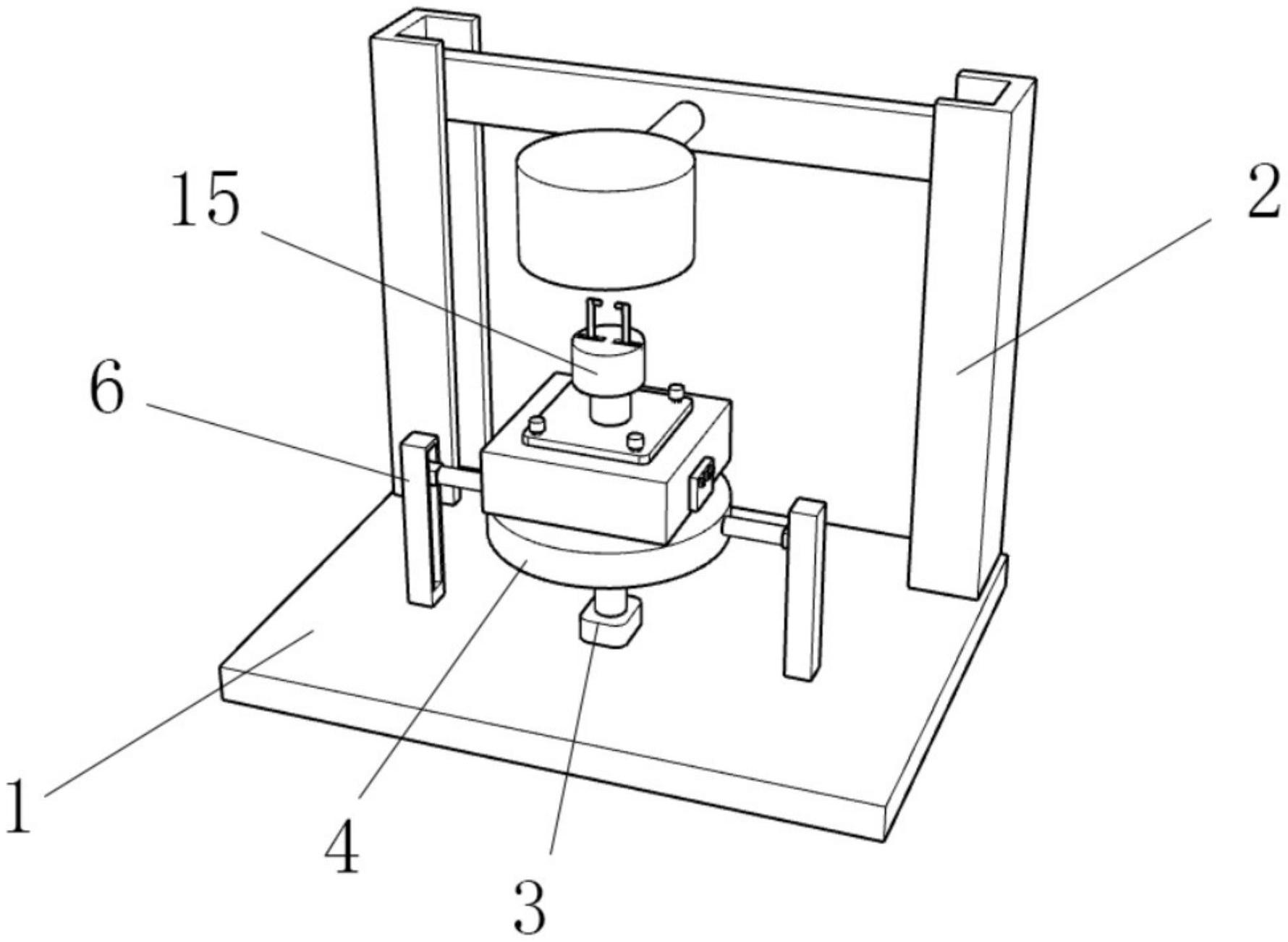 本实用新型公开了一种核电用不锈钢法兰锻造用升降式旋转夹持工装,水平台,水平台顶部的一侧固定安装有锻造装置,水平台顶部的中间固定安装有油缸,油缸的顶部固定安装有圆盘,圆盘的一侧固定安装有支撑轴,水平台顶部的另一侧固定安装有存储盒。上述方案中,核电用不锈钢法兰锻造用升降式旋转夹持工装通过油缸和存储盒的设置,当操作人员将不锈钢法兰工件放在固定组件内部进行夹持固定后,可以开启油缸,油缸带动圆盘进行上升,从而带动固定组件和法兰工件进行上升,用以调整法兰工件和锻造装置之间的距离,便于锻造装置对法兰工件进行加工,避免了只能通过调整锻造组件的高度来对法兰工件进行锻造,方式比较单一的问题。