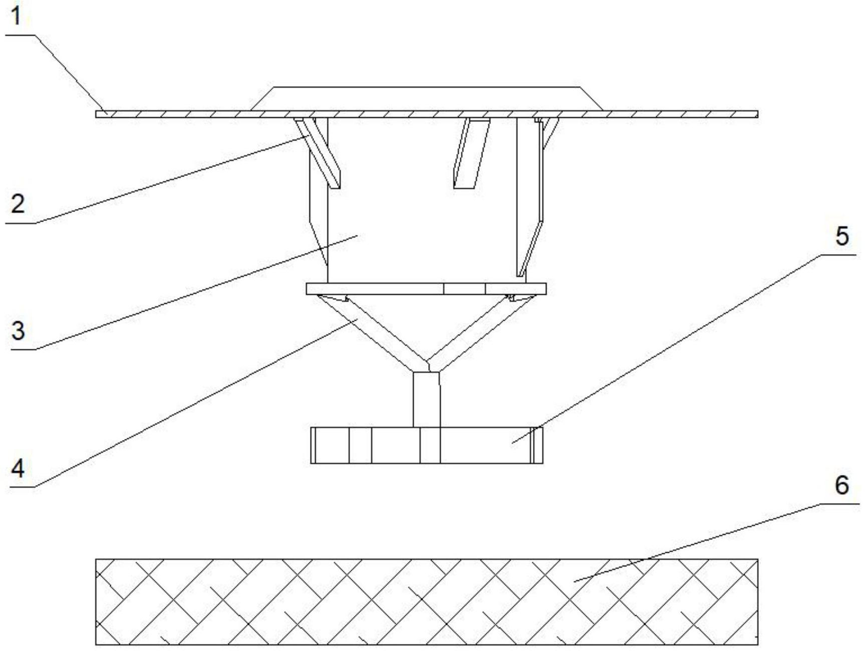 本实用新型公开了一种带自动锁扣结构的冷却塔填料喷嘴,属于冷却系统技术领域。上盖固定在喷嘴内筒顶部,所述上盖上开有用于与喷嘴内筒连通的通孔,喷嘴内筒外周设有若干斜向上延伸的弹性锁扣,喷嘴内筒底部通过支撑杆连接溅水盘。本实用新型的有益效果是:设置弹性锁扣,能够与多孔板自动锁紧,在受到冷却塔运行过程中非稳态冷却水流的冲击下,不会出现喷嘴脱落或一侧翘边的现象;既可以保证带喷嘴冷却塔安全稳定运行,又可以将冷却水均匀布置在填料表面,提高冷却塔性能。