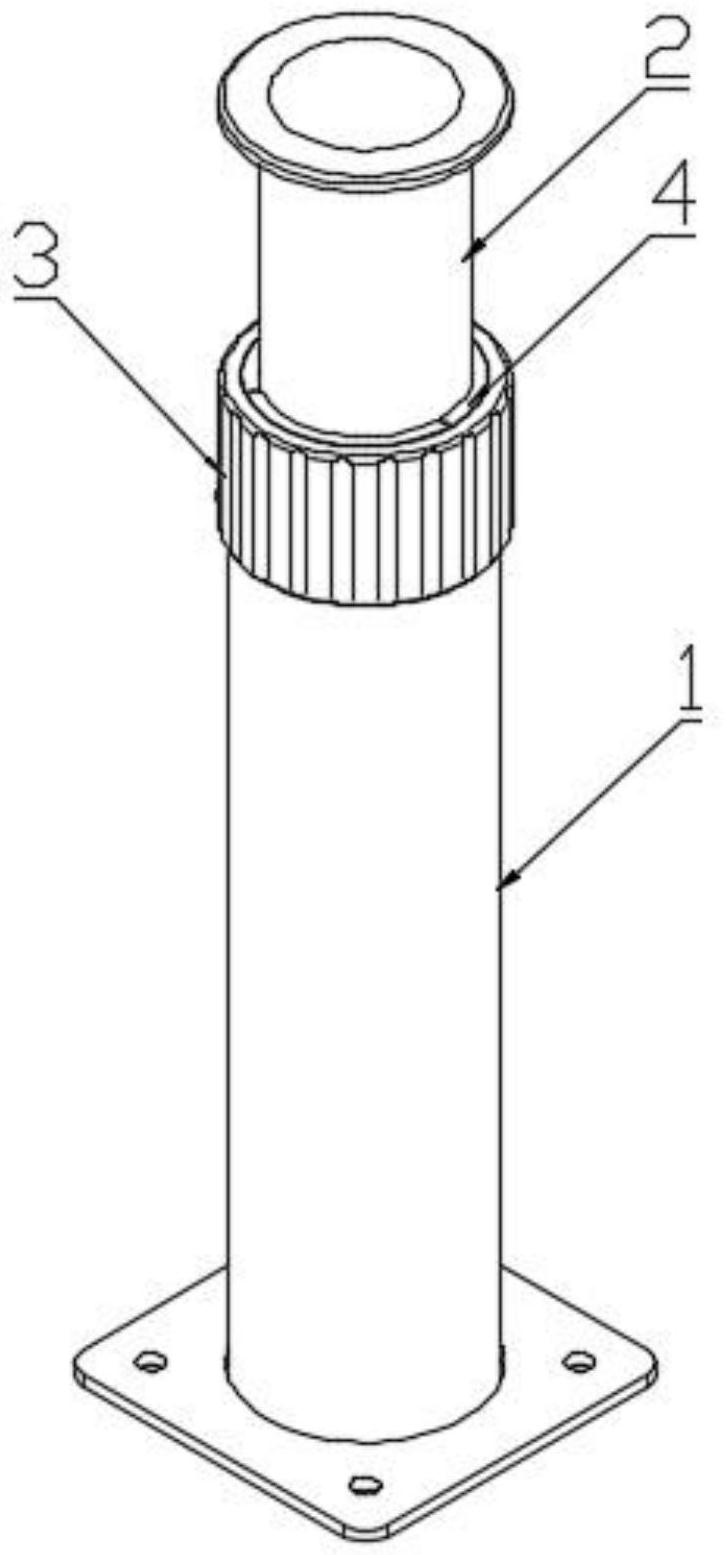 本实用新型涉及冷却塔技术领域,具体为一种冷却塔底盆用可调节溢水管结构,包括升降管,升降管可上下滑动的设置在套管内,所述套管内壁上设置有密封圈与升降管接触;所述套管设置在溢水管上;所述溢水管或套管上端设置有调节盖;所述升降管穿过调节盖设置;所述升降管与调节盖之间设置有楔形块。用于冷却塔底盆水位高度的调节,可以适应不同工况的液位,提高冷却塔设备运行效率。