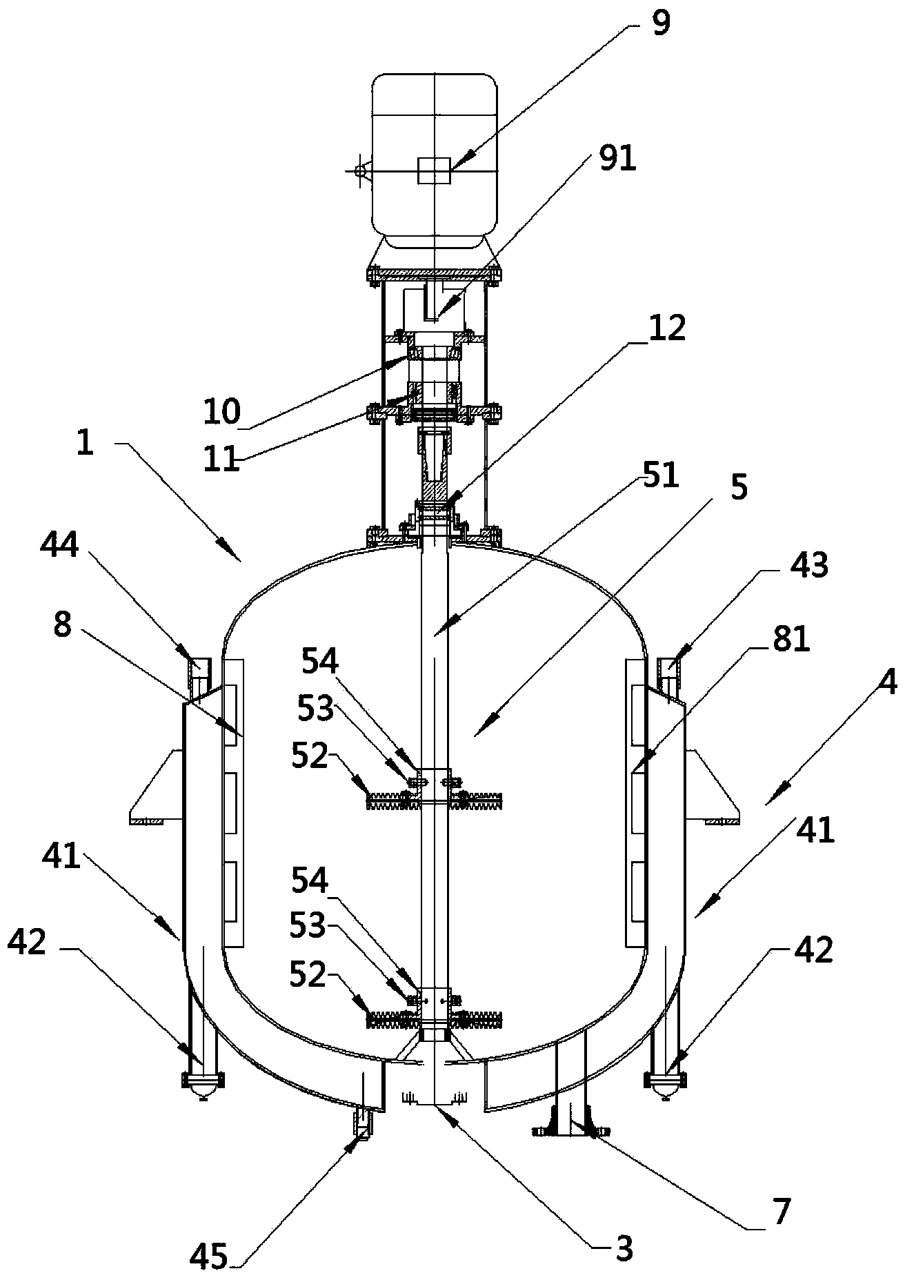 本实用新型公开了一种贝壳粉反应釜,属于化工反应设备领域,所述贝壳粉反应釜包括釜体和与釜体相连接的真空泵,所述釜体的上部设置有进液孔,所述釜体的底部设置有出料孔,所述釜体的外壁上设置有加热装置,所述釜体的内部设置有搅拌装置和清洗装置,其中,所述釜体的底部还设置有进料孔,所述清洗装置包括进水管和与所述进水管相连接的可旋转清洗球,所述可旋转清洗球包括连接基管和与所述连接基管一体结构的空心球头,所述空心球头上不规则的设置有喷水孔,所述连接基管弹性卡接在所述进水管中,所述连接基管和进水管之间设置有滚珠。本实用新型的贝壳粉反应釜在使用时物料不易结块且釜体易清洗干净。